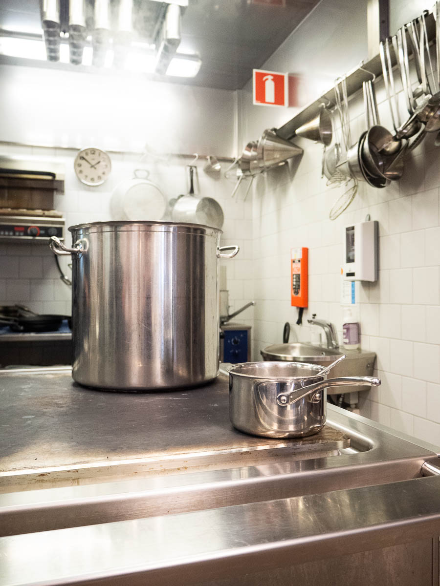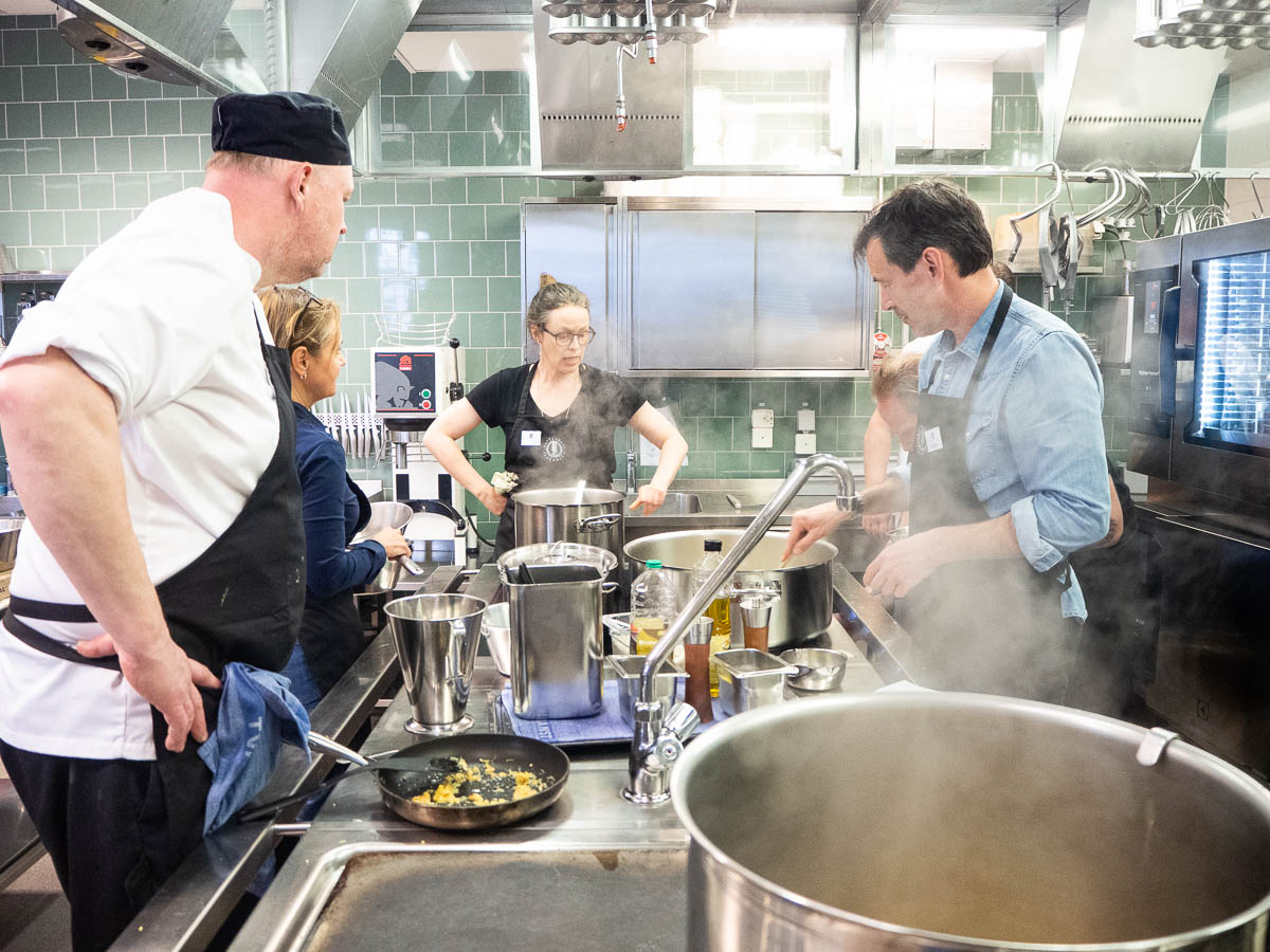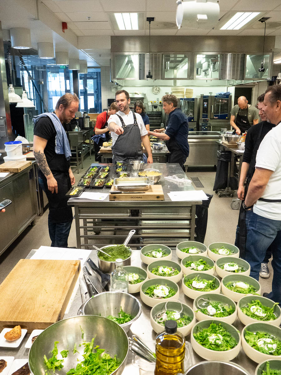 This looks like another scout camp kitchen, doesn’t it? It’s not! It’s a proper restaurant kitchen (indoors! with electricity!) at Restaurakademien, where I spent today learning to cook vegetarian food with a professional chef. I got this course as a Christmas gift and now it finally happened!