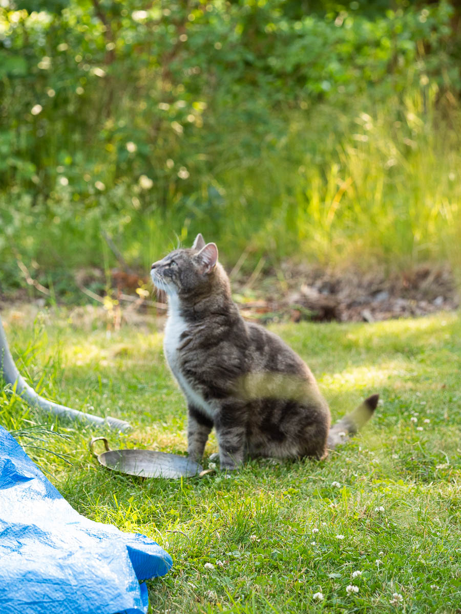 One of the neighbourhood cats is thirsty, and has discovered that there is water in our pool. Several times now I’ve seen it jump up on the pool edge to drink. Its thirst has got to be pretty bad if the pool water – which is clean for a pool, but chlorinated and not sparkling fresh – is the best it can get.