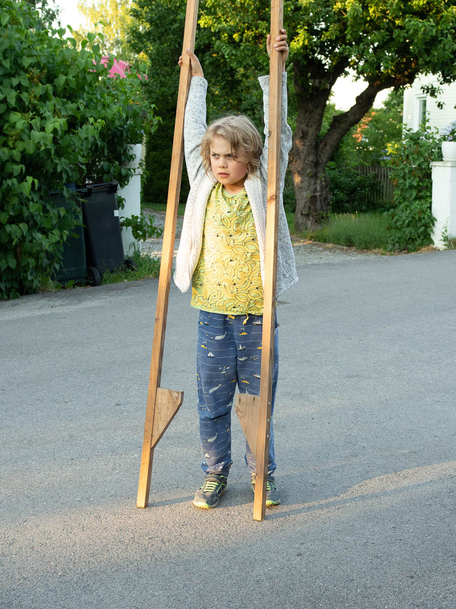 After lunch hung around for a while and didn’t quite feel like going home yet. Then we decided to play games. Apparently that’s a tradition at Midsummer parties, which I wasn’t aware of. Now I know. Femkamp, meaning a contest in five different “events”, is the most traditional form. We had no plans and no equipment with us, so we improvised with what we had and tried to find events that can be done more or less equally by all ages, even when wearing a somewhat impractical dress.