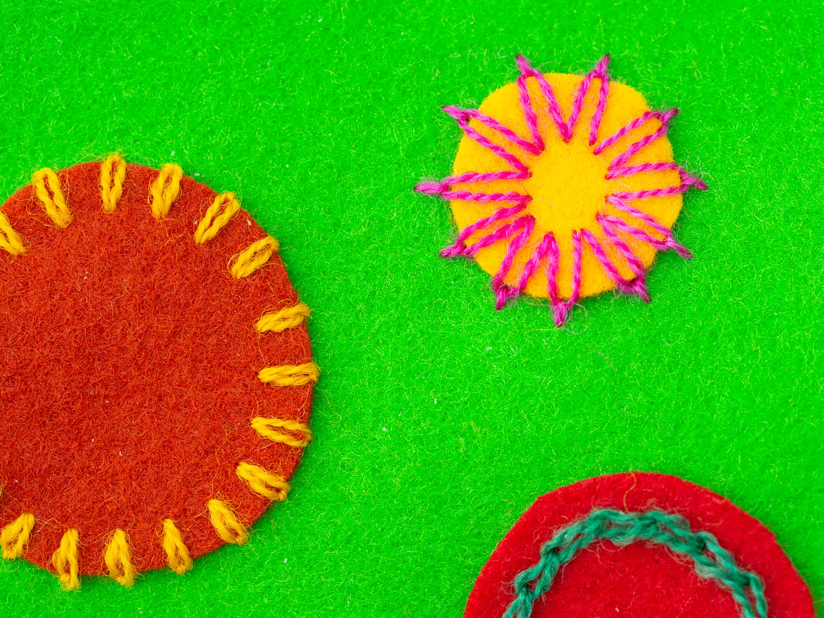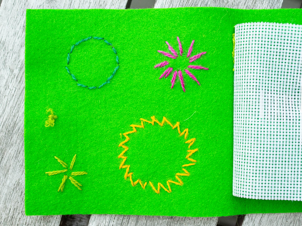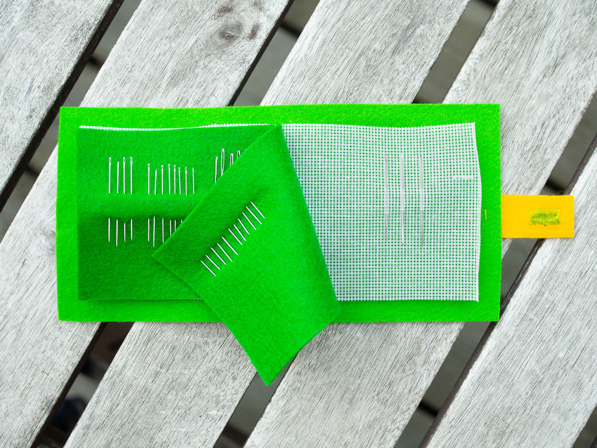 Wool felt is such a wonderful crafts material! It feels nice to the touch, it’s durable and dirt-resistant, and it is so easy to work with because it doesn’t fray. I bought a bunch of felt pieces for my advent calendar in 2011 and I still have some scraps left of that stash in odd colours. That’s actually why this needle book ended up being in green as well – I only had large enough pieces of felt in a few colours, and only the greens harmonized with each other. I was getting a bit fed up with all the green today so I compensated with extra colourful decorations not in green.