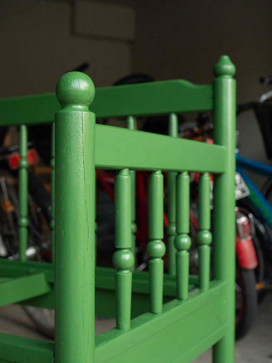 It looks like some spots (not in the photo) may need a third coat. The old dark blue colour is shining through a bit, because my first coat of paint didn’t adhere well. I guess I wasn’t aggressive enough with the sandpaper.