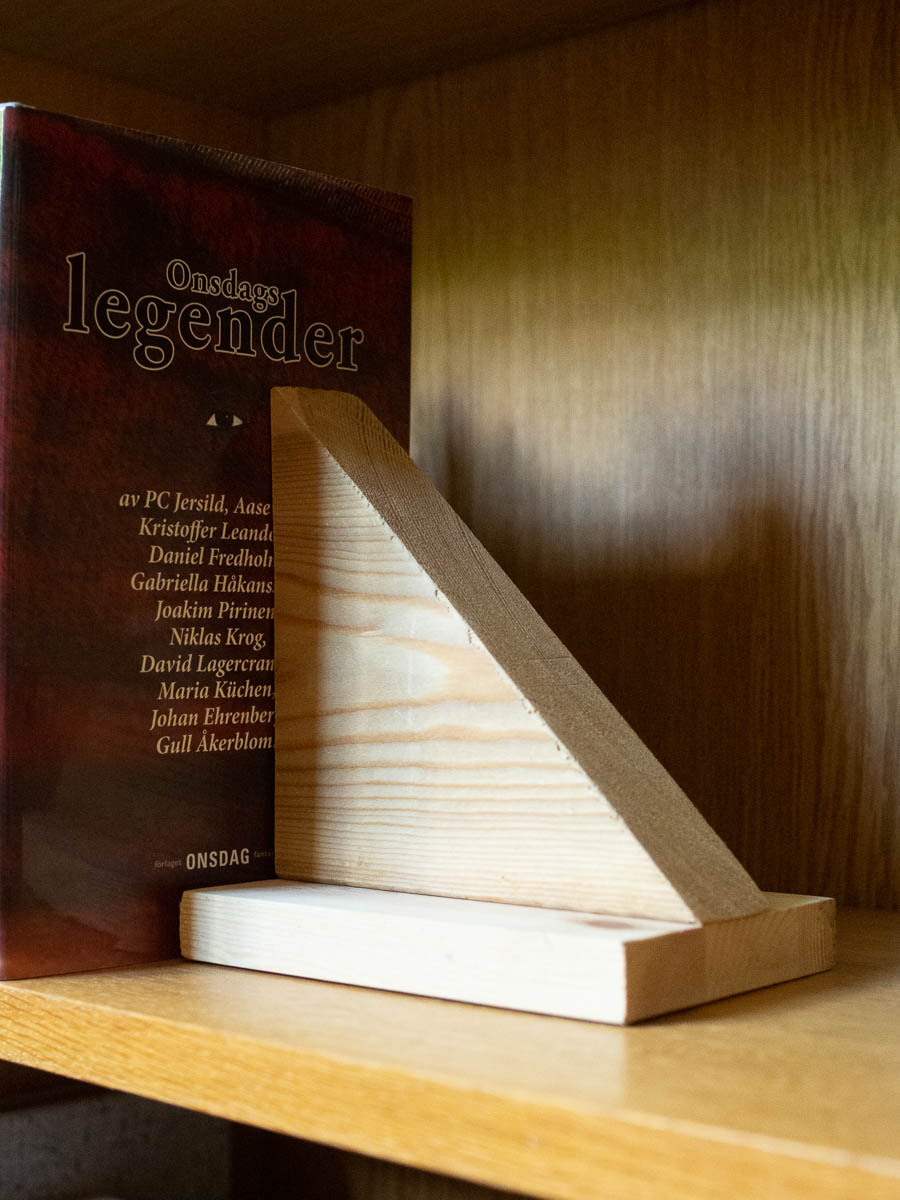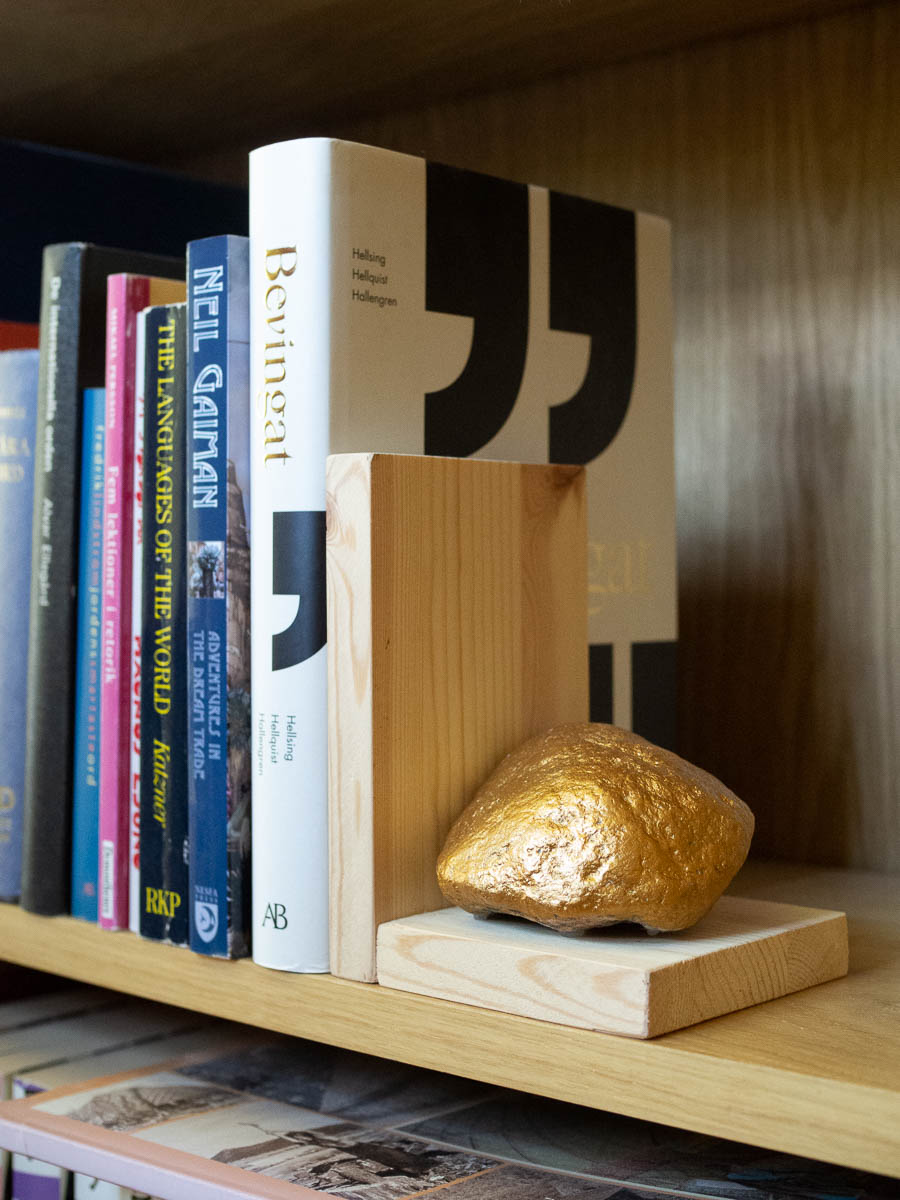 The only part that was not scrap material was the rocks. I picked a few smooth white pieces of limestone when we were in Gotland, with the bookends in mind. The golden rock is just a random rock that I found in the garden. It was not very pretty so I prettified it.