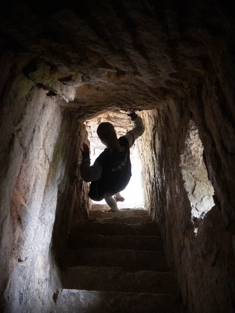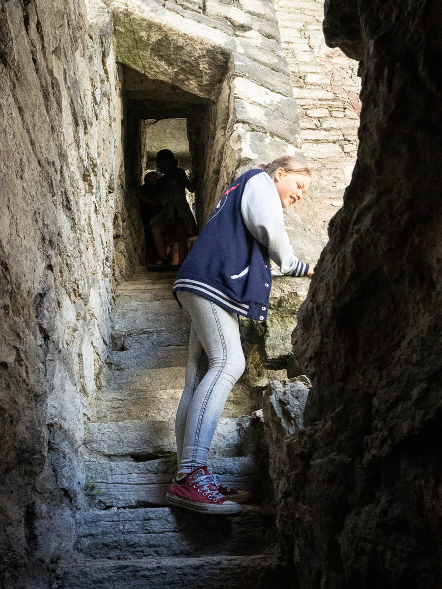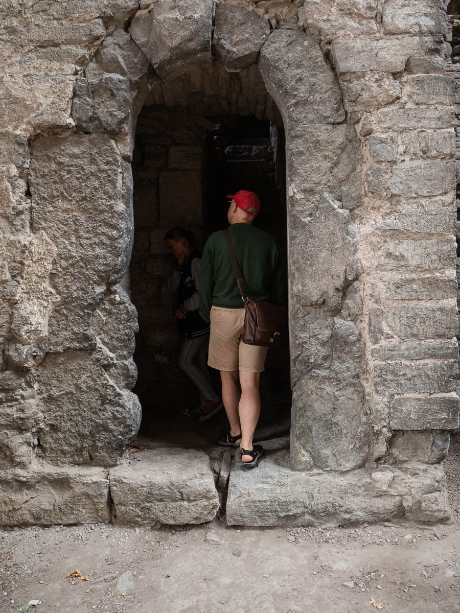 The caves at Lummelunda were our destination in a way but the cycling there and back was almost more important. And we made several stops on the way – to admire the views, climb rocks, take a walk in a nature reserve, etc. We took a long and lovely lunch break at Krusmyntagården. Almost all our food here on Gotland has been good but this was the best meal I’ve had here.
