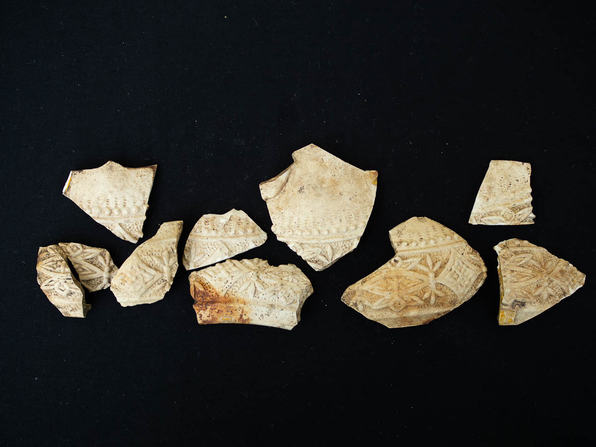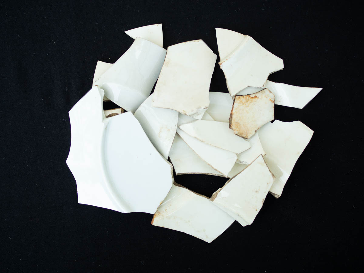 Plenty of chunks of plain white plates – more than one because of differences in thickness and curvature.
