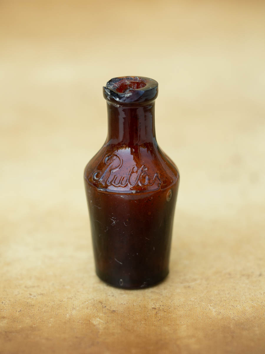 The brown little bottle was easy to identify because it has a logo. Rulles is a maker of liquer essences, still exists, and their website has a small photo archive.