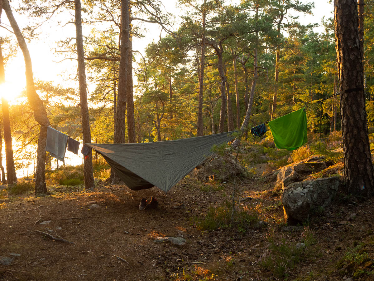 When we were done bathing it was quite late already and we had a lot left to do. Get the hammock up for Adrian, cook dinner, eat… It still takes me a while to get the hammock properly adjusted. After dinner it was bedtime for Adrian, while I stayed up reading for a while.