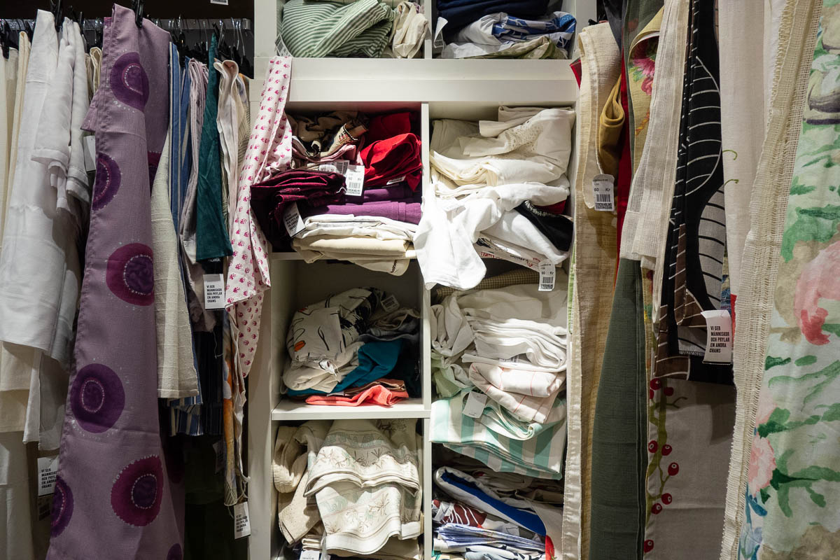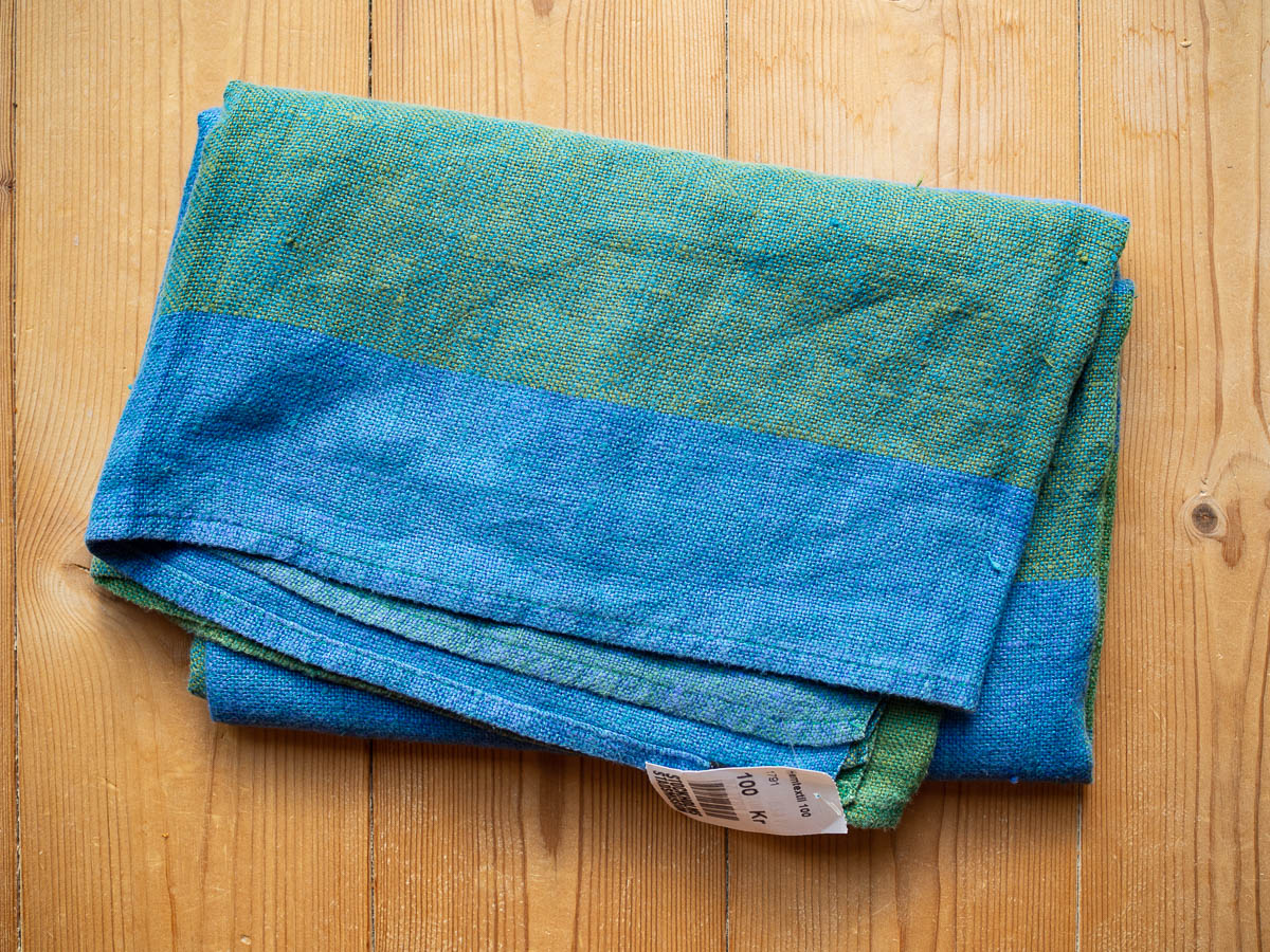 And then I realized – there is a Stadsmissionen thrift shop in Vällingby, which can totally count as a fabric shop, and even be better than the real thing. Every thrift shop in Stockholm has piles of curtains, pillowcases and tablecloths. More eco-friendly than buying new fabric, and a more varied choice, too. The tablecloth I bought is 100% linen, thick and soft – a much more luxurious fabric than I would otherwise have bought for this.