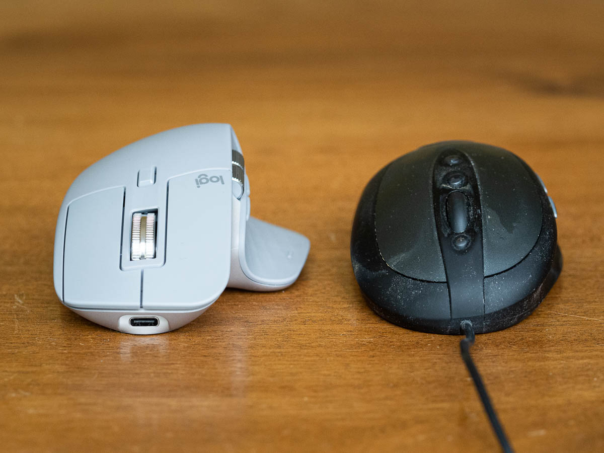 The new mouse is wireless. I like the reliability of wired mice, but on my small desk a wireless one will be more convenient. That cable won’t be hitting my magazine stack any more.