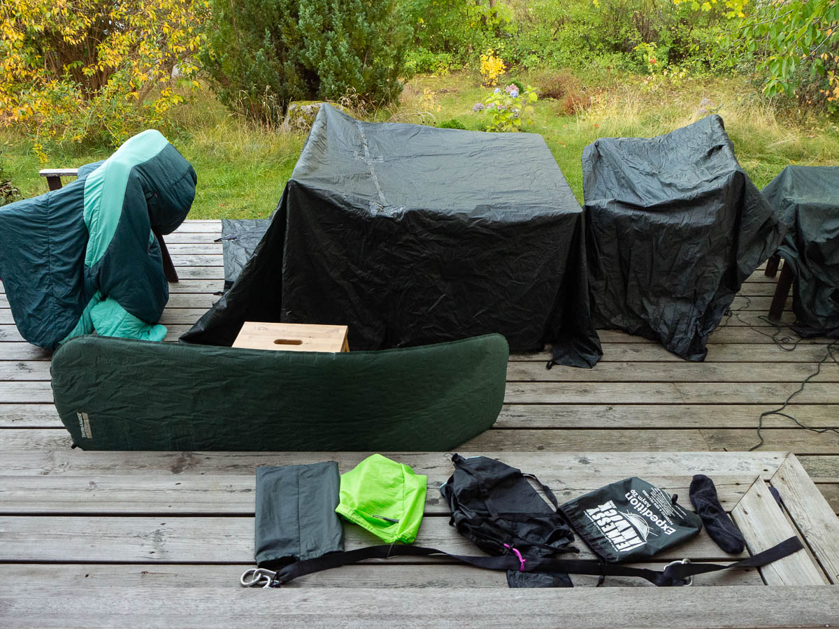 Now our deck is full of drying camping gear, because just about everything she used was soaked.