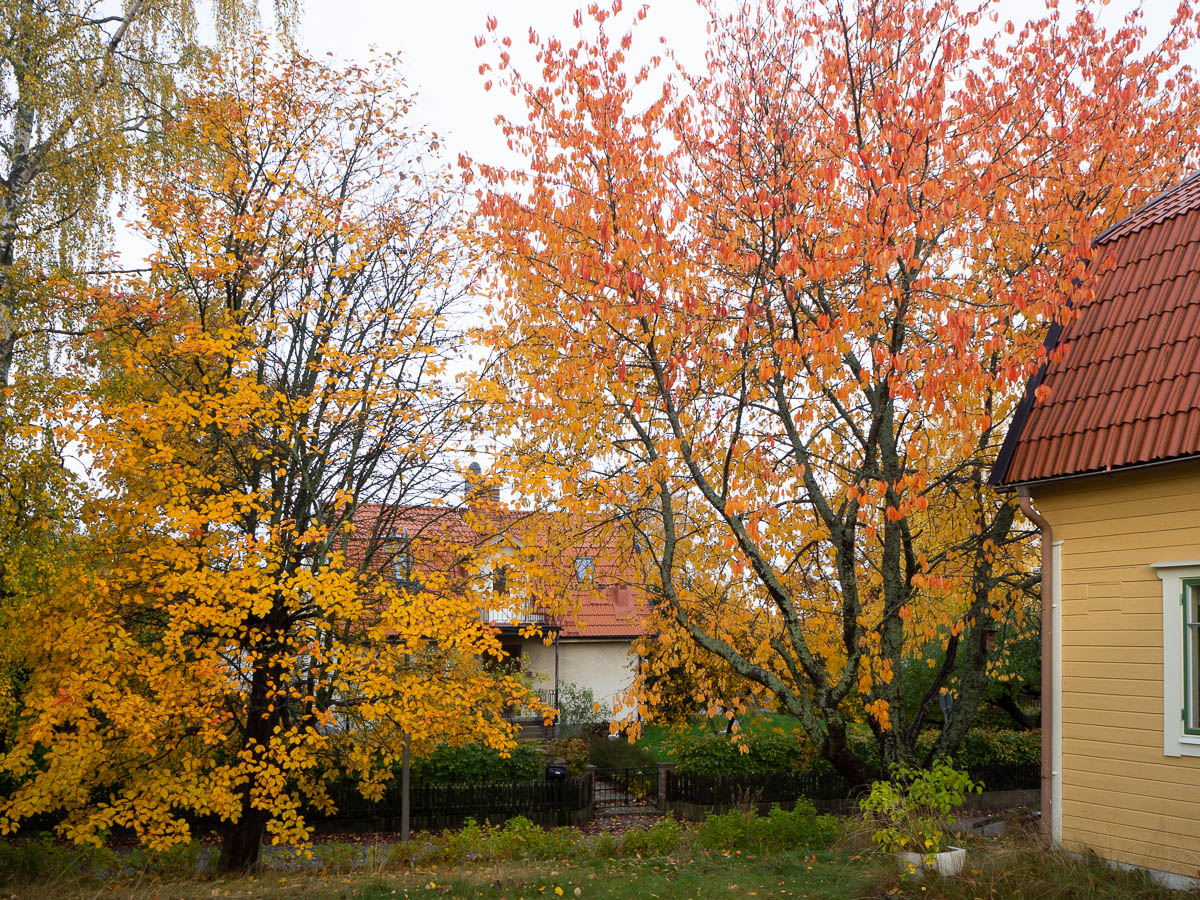 The whitebeam and the cherry in front of the house are both clad in the most brilliant, luminous autumn colours.