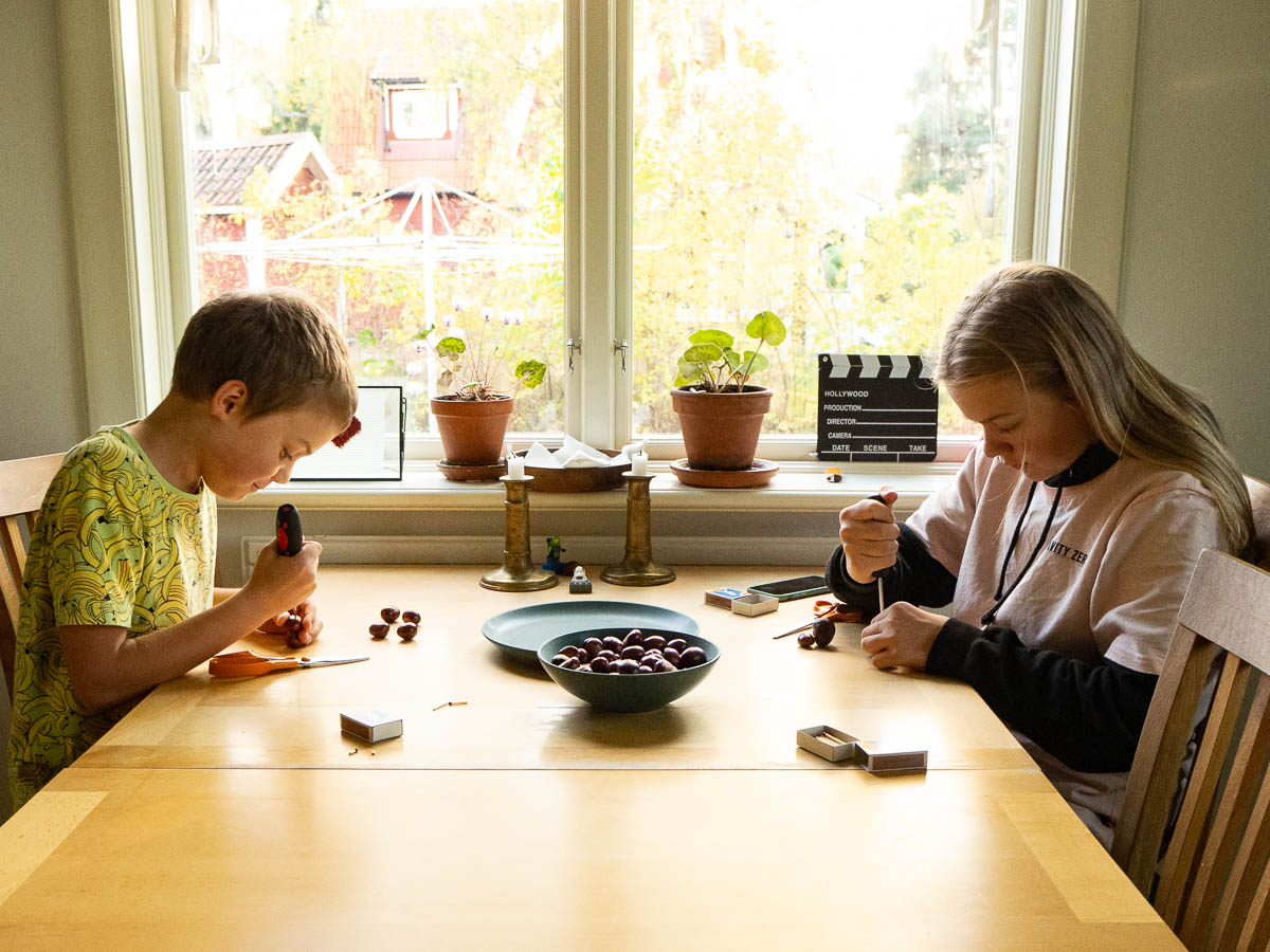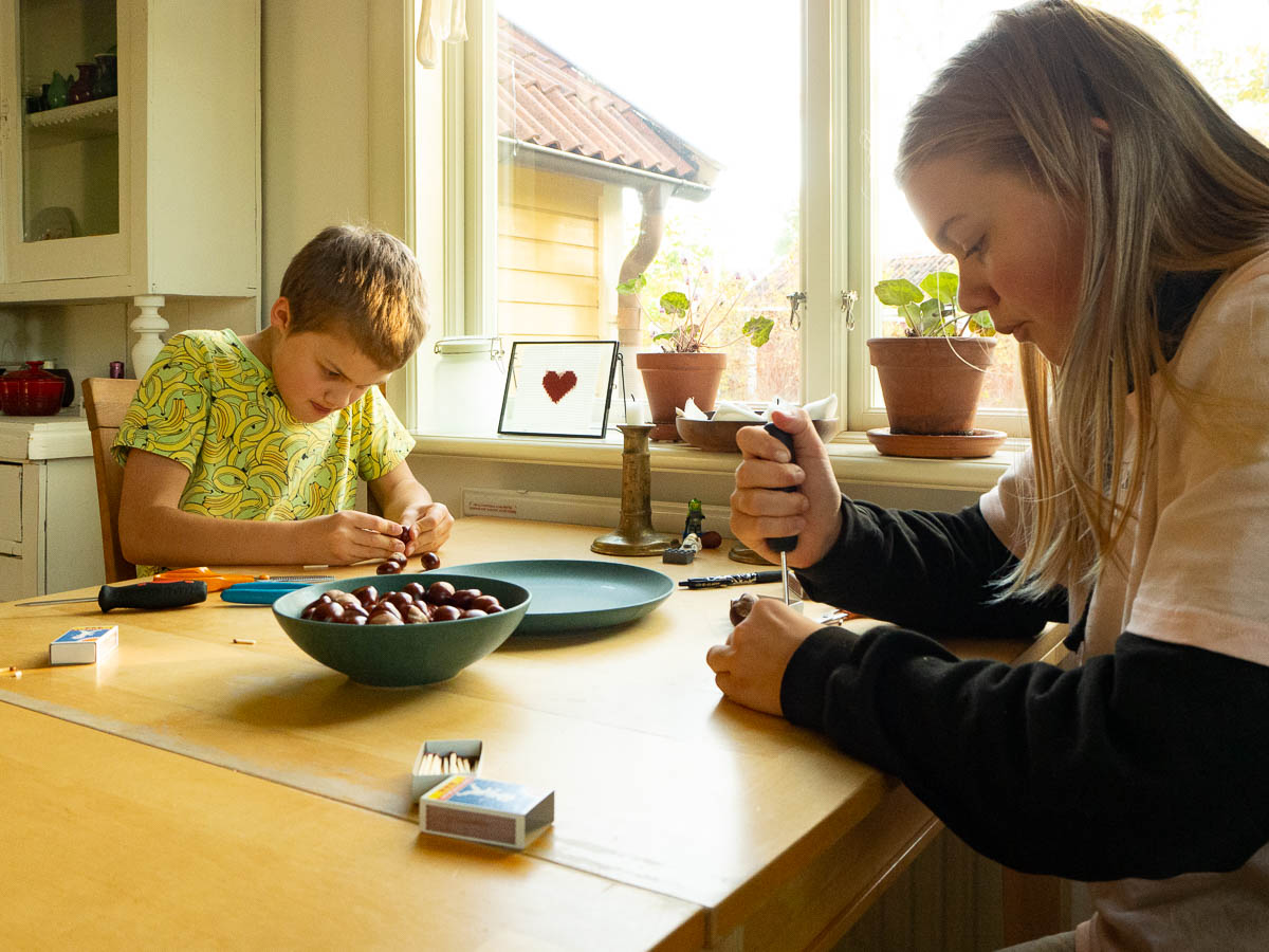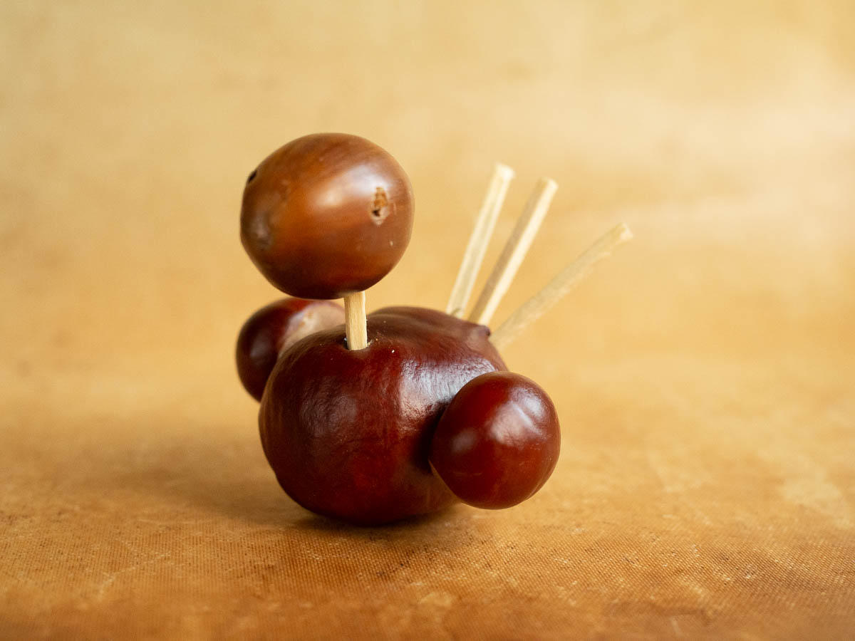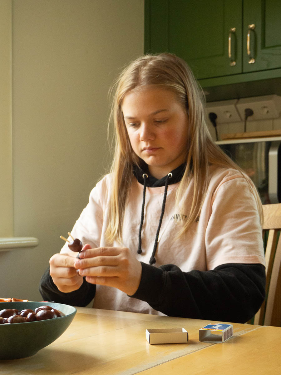 Today we made chestnut creatures, as is our tradition. Adrian provided the chestnuts.