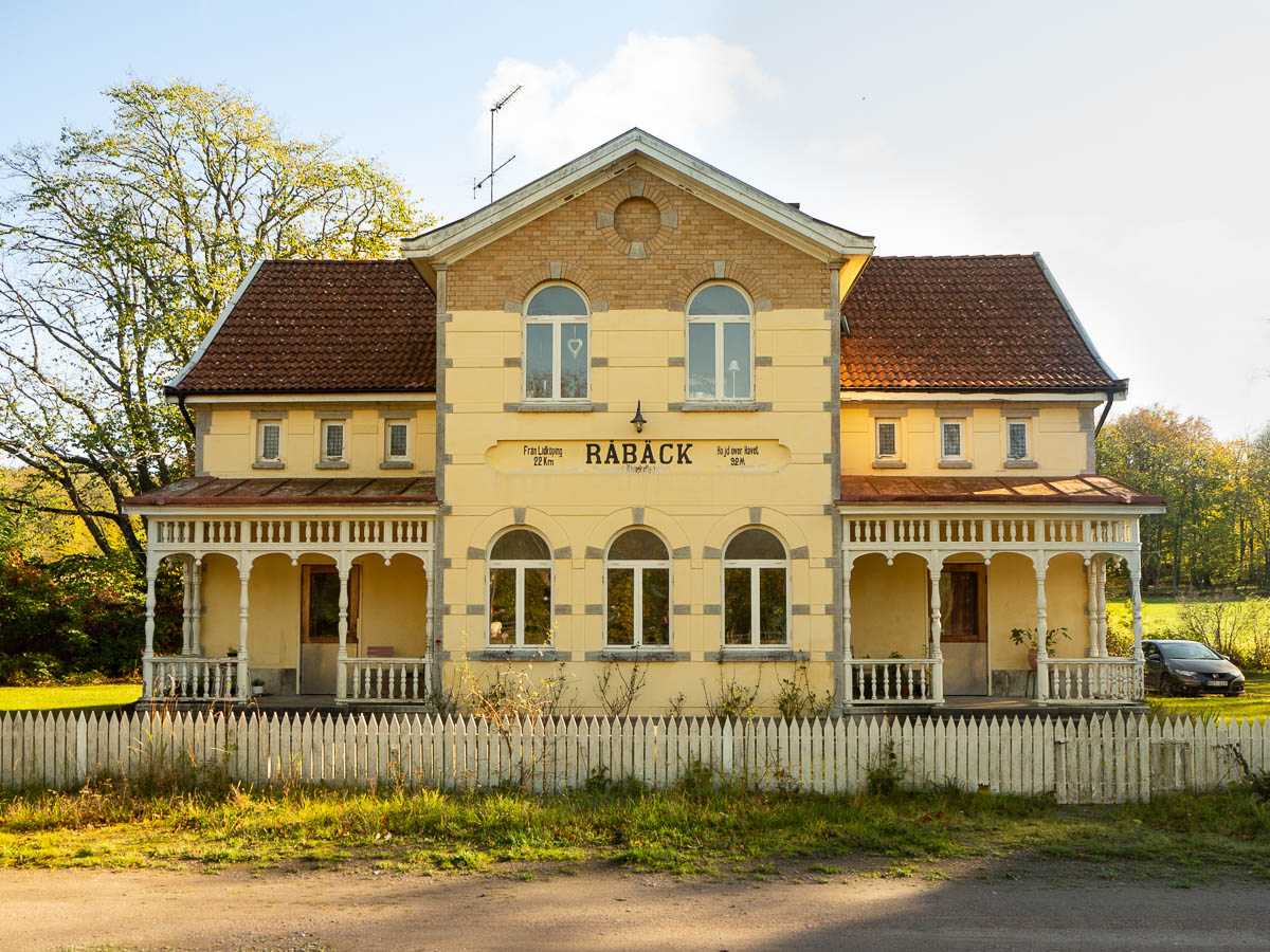 Råbäck train station has one of those lovely old station buildings, loudly proclaiming that this station has been more important in the past. Now the station building has been turned into a residential one, and the village mostly consists of summer cottages. You can see some old postcards from the station’s heyday here.