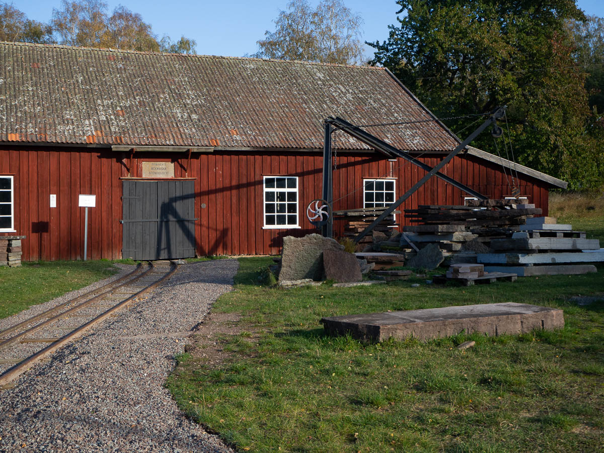 The path first winds along country lanes through the grounds of Råbäck manor to Råbäck harbour. Again a place that clearly has seen more activity in the past. The harbour is large and solid, clearly built for substantial traffic. It was used for shipping out limestone from the local quarries. The old stonemasonry workshop right next to the harbour, closed since the 1970s, is a museum now but was unfortunately closed today.