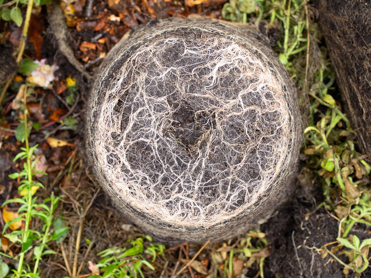The thick tangle of roots filling most of the pots is pleasing to the eye, because it means they’ve grown well. Most pots looked like this. But there were a few where I could pull out a plant with no effort, leaving much of the soil still in the pot – their roots had barely grown since I planted them. It didn’t really come as a surprise, because the lack of growth in some of the plants was very obvious above ground as well.