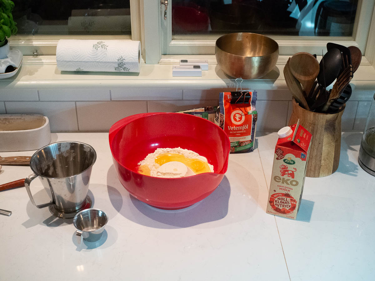 I notice that my few photos of cooking here tend to be of making pancakes. I’m not sure why that is. Perhaps because a pancake dinner feels special.