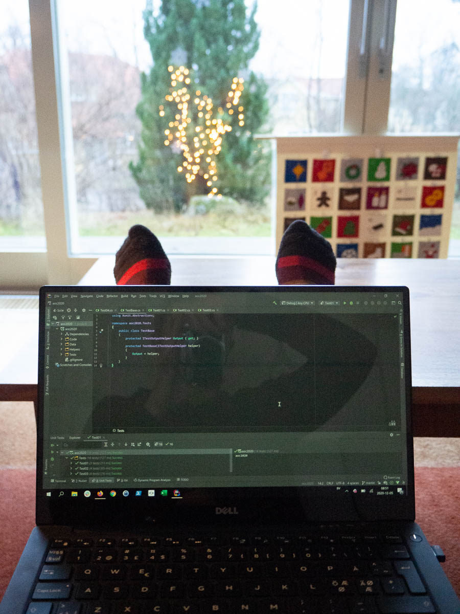 It’s December and Advent of Code is on again. I begin my days by sitting in the sofa, feet up, solving the day’s puzzles. One advent calendar in the computer, another in the background…