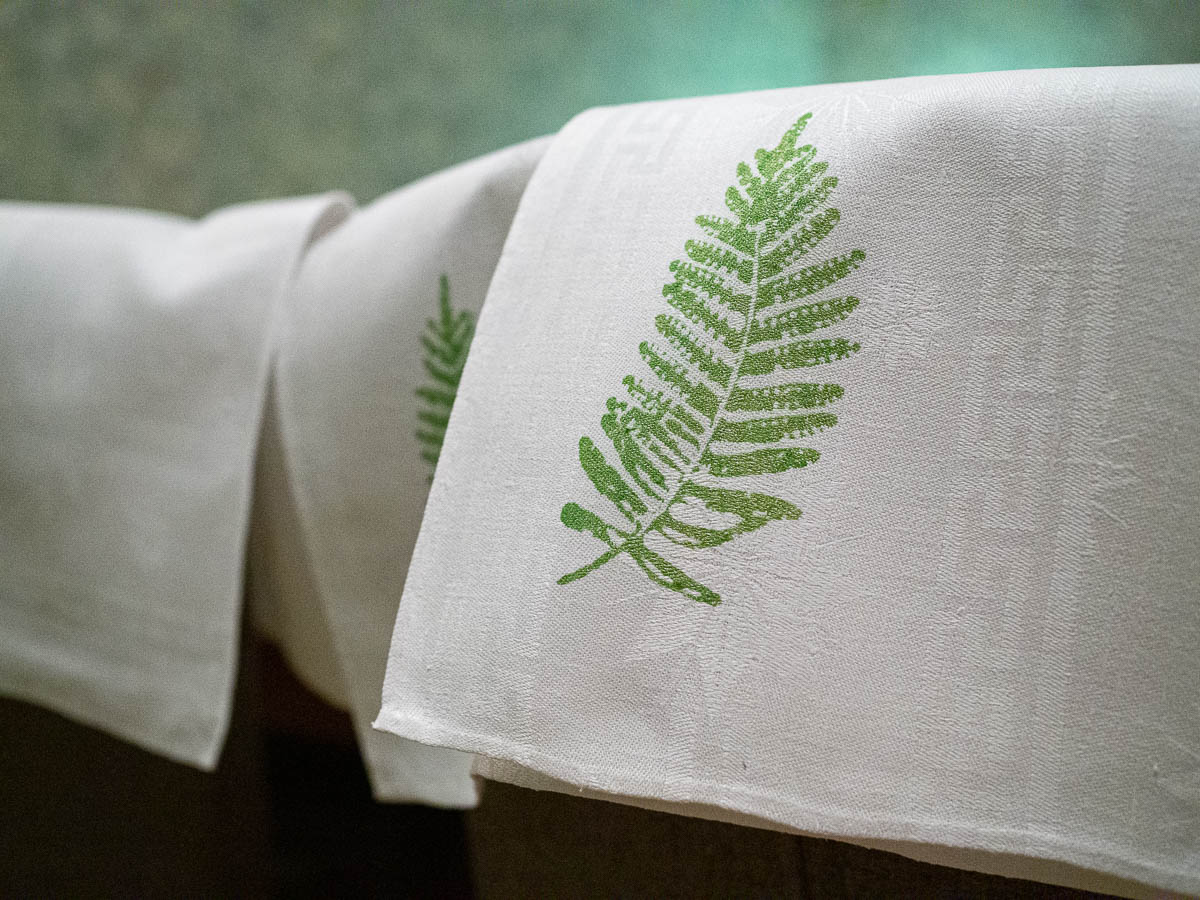 I finally finished the napkin project I started in July! One batch I embroidered already back then. The other batch I intended to decorate with prints. I ordered a nice stamp from Etsy. And then I waited. I think it took over two months for it to arrive by snail mail from somewhere Russia. In September I was busy with other things so I put the stamp away and then more or less forgot about it until now.
