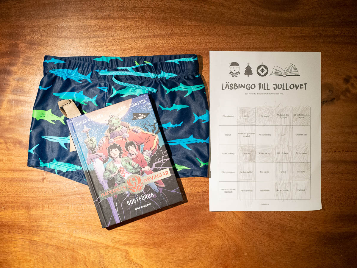 Adrian’s class got homework of sorts for their Christmas break, in the form of a reading bingo. Five by five squares, with reading challenges like “read on a Monday”, “read in bed”, “read while eating something nice” etc.