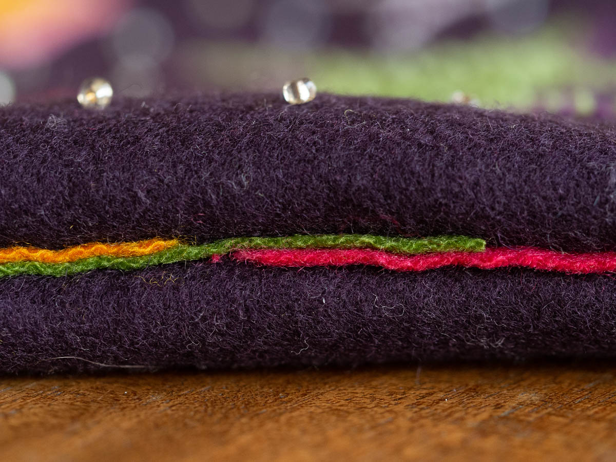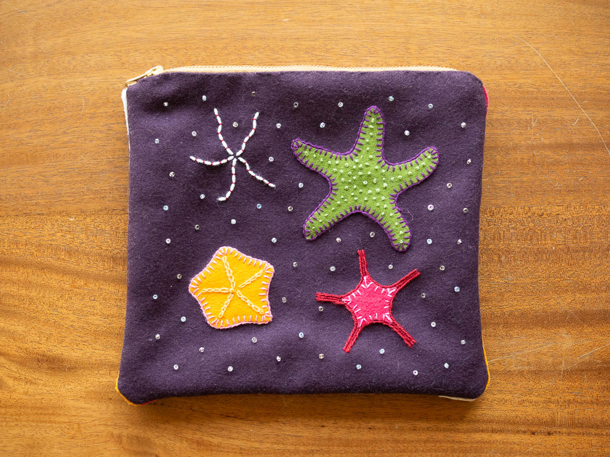 This weekend I finished assembling the little bag that I decided to use my embroidery sample for. Instead of a pretty but useless piece of embroidered wool, I have a usable bag.