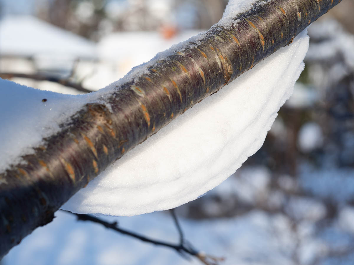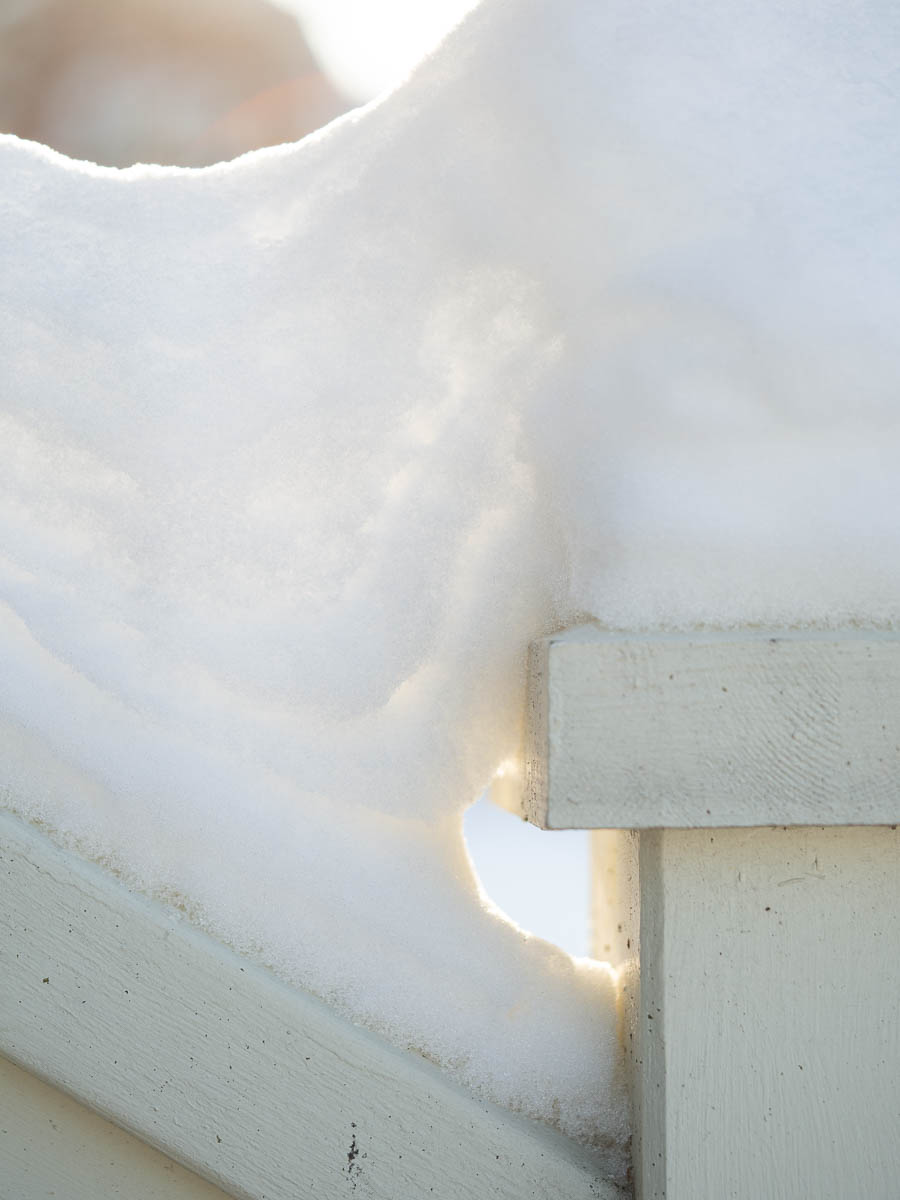 Snow has piled up on tree branches and porch railings in precariously curling layers. In some places, it’s started slumping off whatever thing it landed on, but somehow still clings on in gravity-defying curves. I’m peeved that I can’t manage to take photos that do these shapes justice.