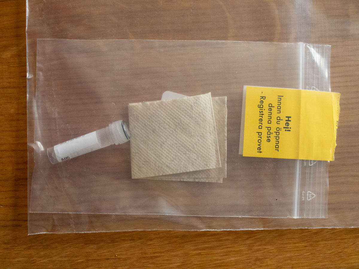 The current procedure is that everyone with symptoms of possible covid-19 infection should get tested. In Stockholm you can either make your way to a drive-in testing station, or get a DIY test delivered home. We went the home testing route.