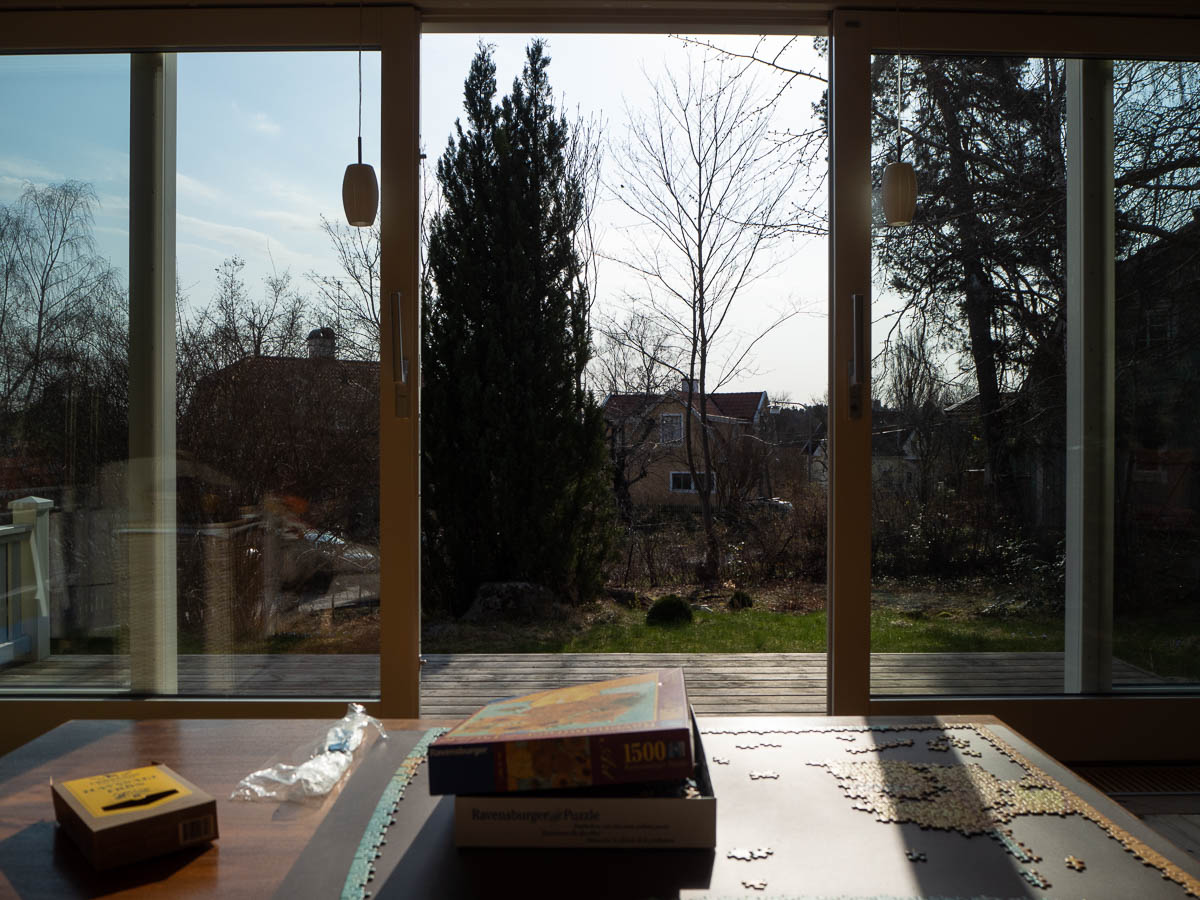 The morning sun is so warm that I can open the doors out towards the garden and enjoy the birdsong while I sit and read in the sofa.