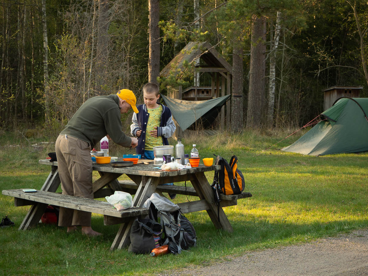 There’s a good chance that the national park will be chock full of people tomorrow – it’s a long weekend in May after all – but at least this place isn’t crowded. We’re camping at the Tivedstorp STF hostel. They have a camping ground, and then they have “the other camping ground” which is at the very far end of everything and if I sit facing the right way then it really feels like we’re on our own out here. But with the benefit of a road, and an outhouse, and running water within a few hundred metres’ walk.