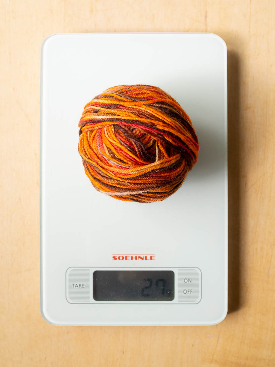 Sock yarn comes in hanks of 100 grams. One pair of standard socks for myself or Adrian weighs 51 grams. (His are 1.5 cm shorter in the foot than mine but higher in the calf.) So one hank is just barely not enough for two pairs of socks, which is a bit unfortunate, since both Adrian and I loved this yarn. But I can make us a pair each if I use a different yarn for the sock heel for one of the pairs, which would actually be pretty practical anyway, because it will help us tell our socks apart.