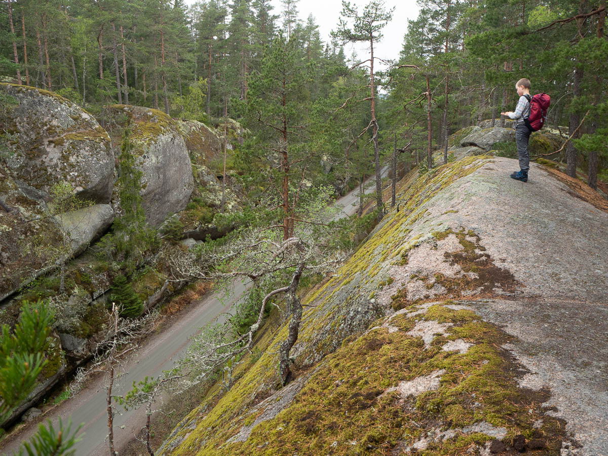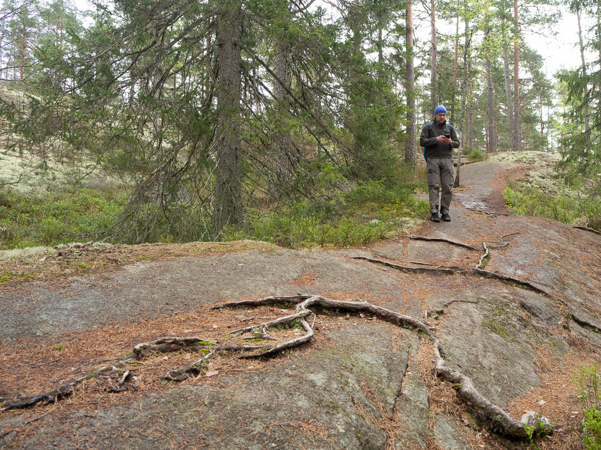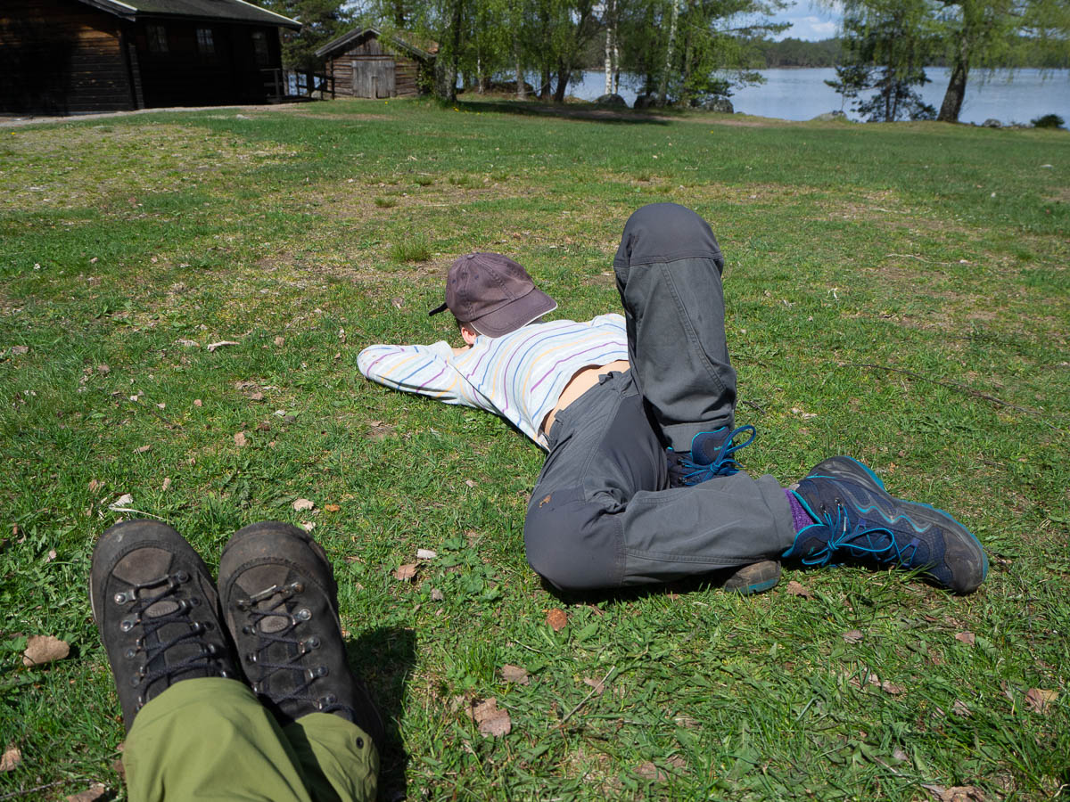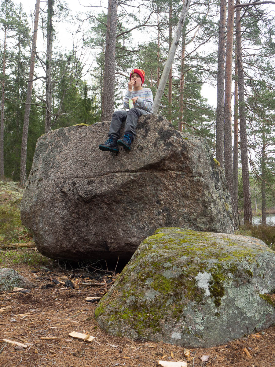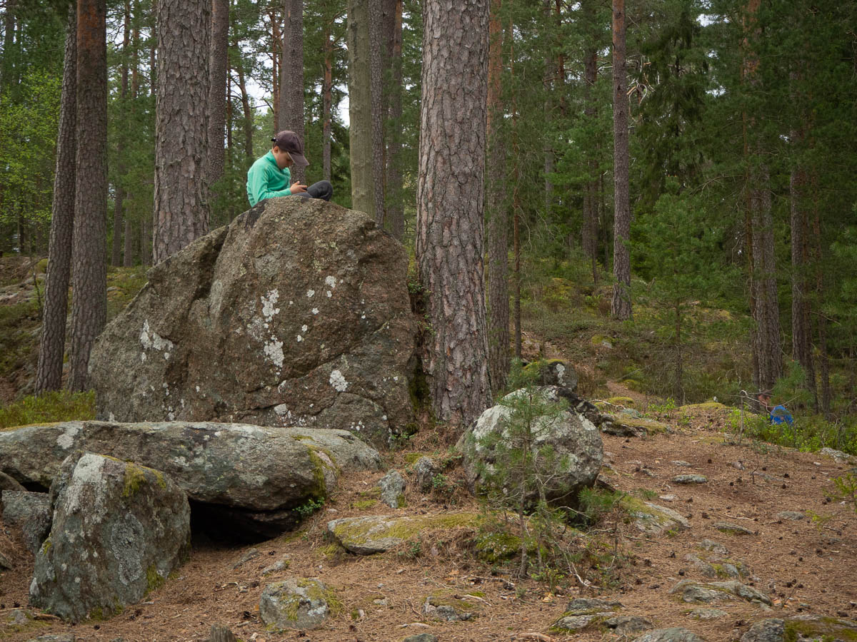 A full day of walking. We hiked around lake Trehörningen (“the triangle”) and added an extra detour to see some caves.