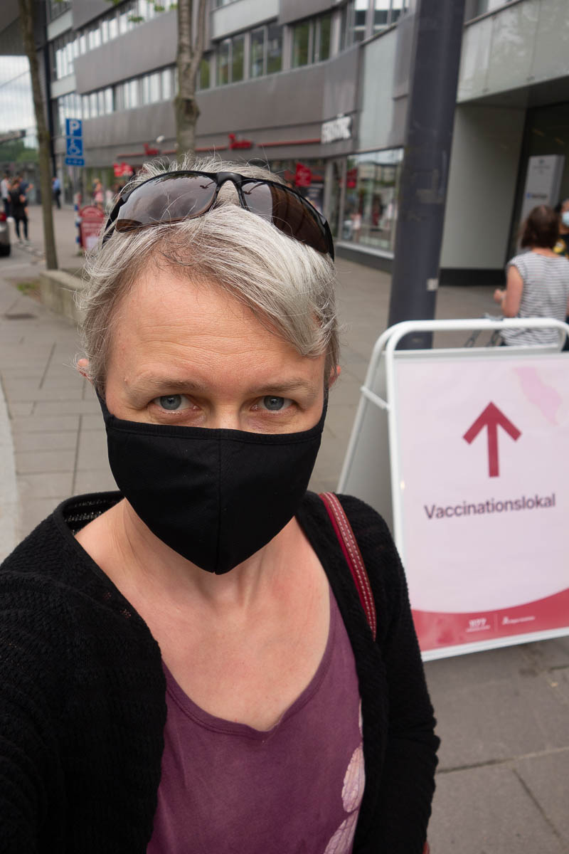 The process was incredibly smooth and fast. Large info signs, hand sanitizer stations, wide queueing areas, etc. There were 30 or 40 vaccination booths lining the edges of one of the congress hall, with nurses who were probably quite tired of repeating the same five sentences to everybody… The other hall was all set up with carefully spaced chairs for the mandatory 15-minute post-shot observation period, with nurses at hand and a large digital clock in the front.