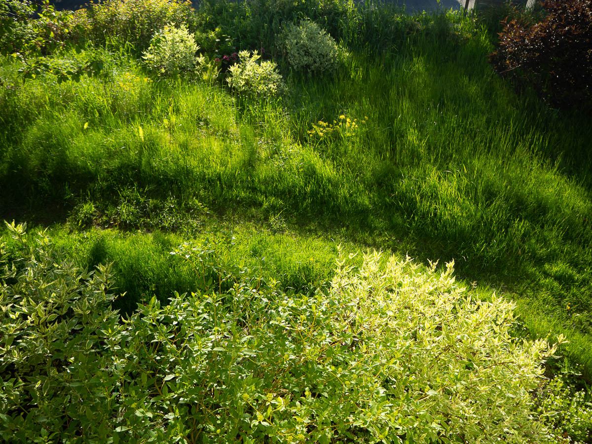 Working from home and spending so much time in the bedroom/office/gym, I am seeing the front garden from a new angle. I am used to seeing it when I walk past it or through it or to it. Now I’m also seeing it from above every day, especially when I open the window to cool down the room. It’s a bit of an unconventional angle for admiring a garden, but this part of it looks really good from above. There are the curves of the flowerbed and the path, and the bushes right next to the wall beneath me giving it depth.