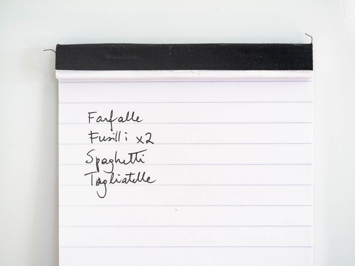 … when the kids are old enough to cook their own meals when their meal times are out of sync with the rest of the family, and their cooking doesn’t stretch much farther than pasta with ketchup or pasta with canned tomato sauce or possibly mac and cheese, and they keep this up for weeks, and they somehow never learn to write things down on the shopping list when they empty the last package of something, and then I feel like making pasta for dinner, only to discover that the pasta shelf of the pantry is effectively empty.