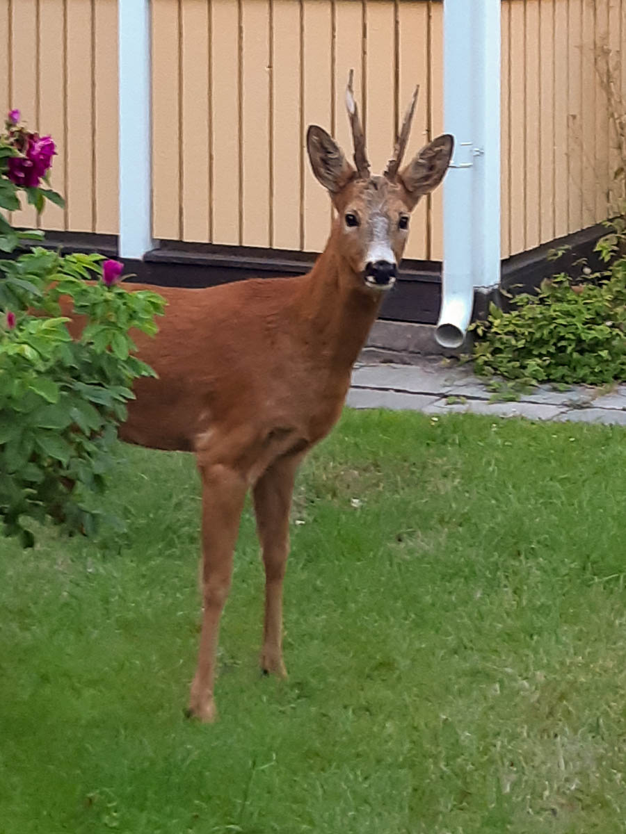 I see deer passing through our garden almost daily. And when I was out walking this evening, I met this guy. They’re barely even shy. I guess there aren’t many people around right now, with vacations and everything, so they deer can be bolder than usual.