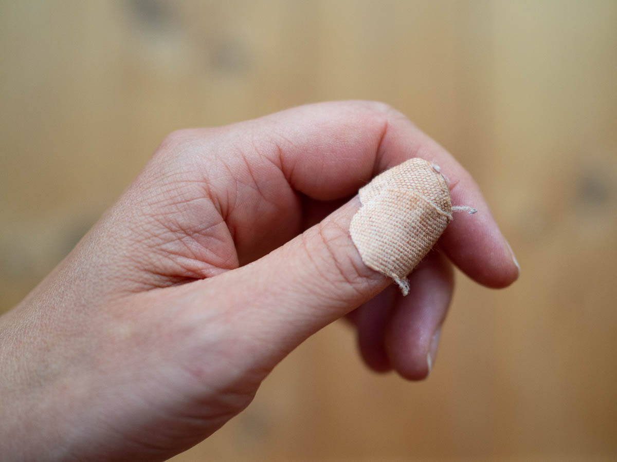 The plaster gets wet and dirty the moment I touch anything in the kitchen, so I try to avoid using my thumb when cooking. When I do use it, my grip is off. And then my brain somehow goes from “don’t use the thumb” to “just avoid that part of the hand” so I find myself doing things with my middle finger instead of the index finger, for no good reason at all, which makes the weirdness even weirder. Give me back my thumb!