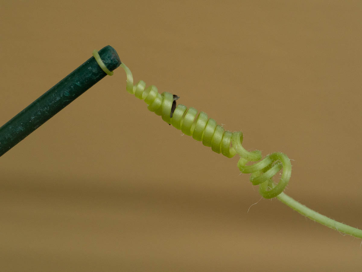 It’s amazing how the cucumber plant can reach out with its curly gripper thing to the one and only support that’s even remotely within reach, 10 cm away. What magic does it use to find it?