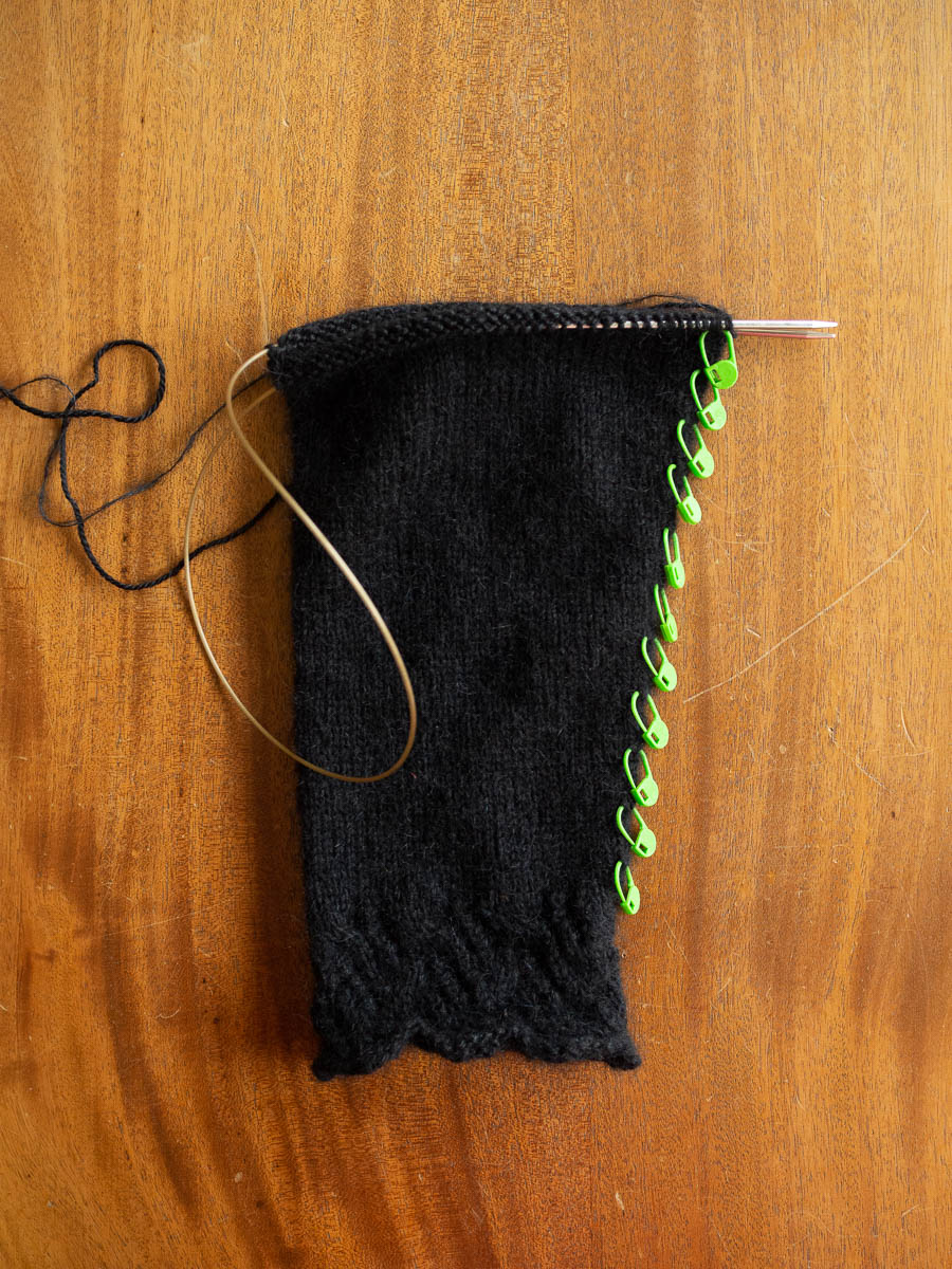 They are ugly but useful. Which wasn’t really a surprise. One benefit that was a real surprise is that because they are of uniform shape and size, I can see just by looking at them whether all my increases are equidistant from each other. Of course I still count my rows but if I did happen to miscount, I’m pretty sure that the resulting misstep in the rhythm of the line of markers would make the mistake very obvious.