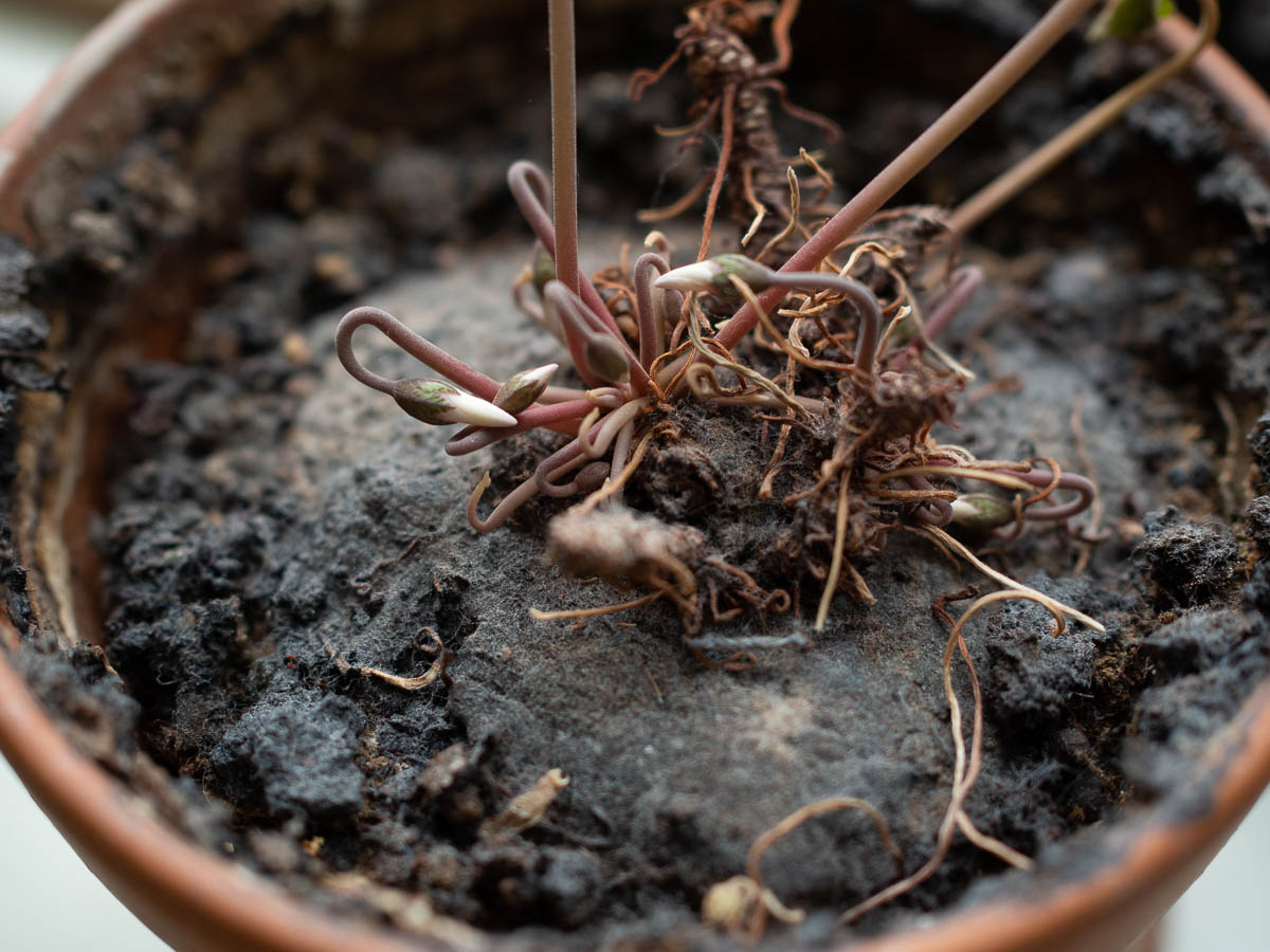 And then suddenly they decide that the world is now in a liveable state again and send out new shoots. That’s when I bring them back to the kitchen from their exile on the living room’s shadiest windowsill, and start watering them again.