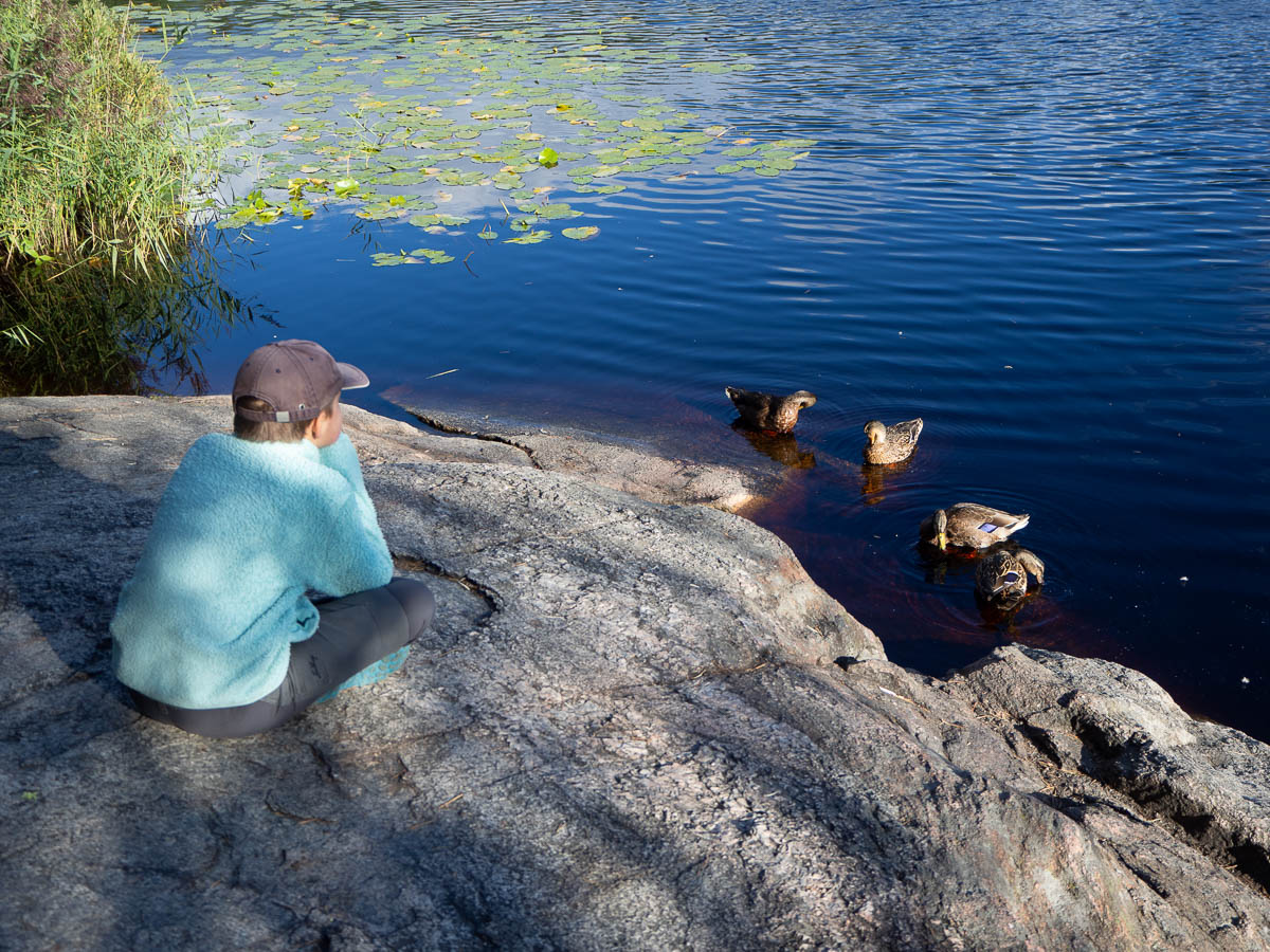 Årsjön and Bylsjön both had gangs of ducks who were all very used to being near people. They were pretty obviously expecting to be fed. After we washed up our breakfast dishes in the lake, some snacked on our porridge scrapings.