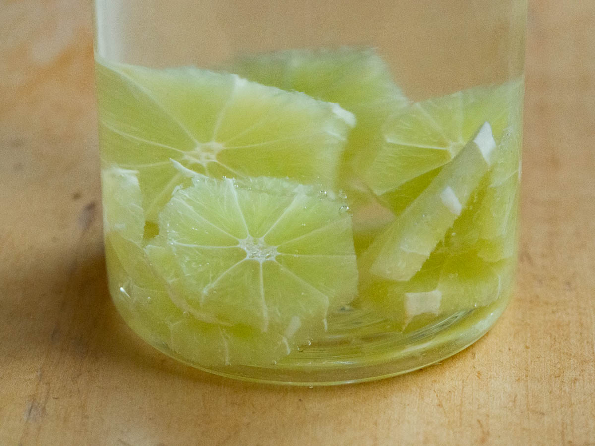One lemon can power a whole lot of water. Almost like perpetual stew: when the water runs low, I fill the carafe up with more, on top of the existing lemon slices. After a while the lemon starts dissolving, with individual cells floating around in the water, and that just makes it taste even better. It doesn’t last forever, though – after a while it loses its flavour.