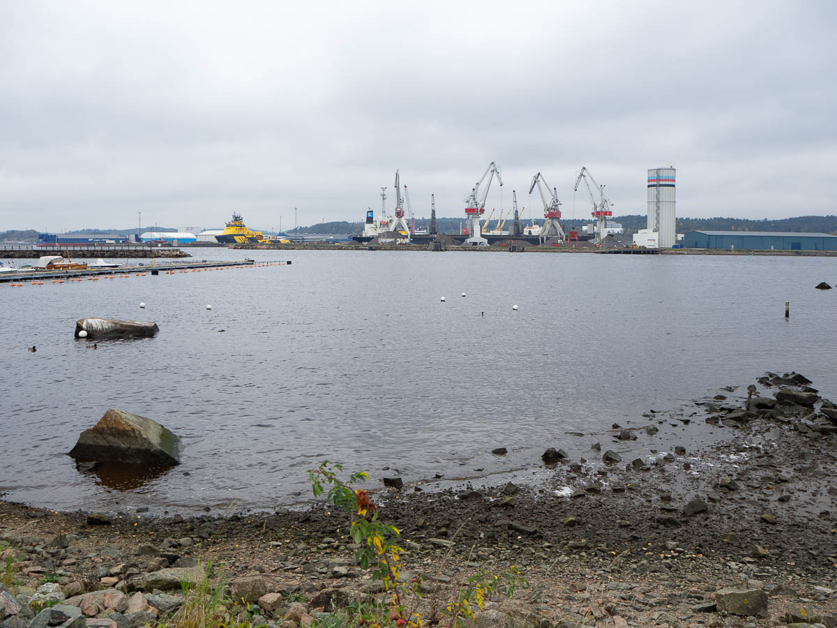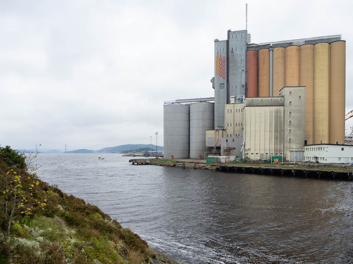 Towards the edge of the city, I could see the industrial harbour on the other side of the river, and far off in the distance the Uddevalla bridge.