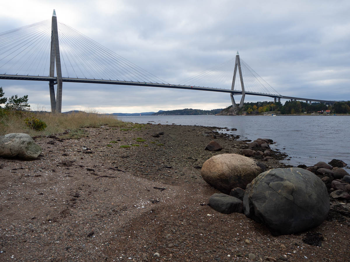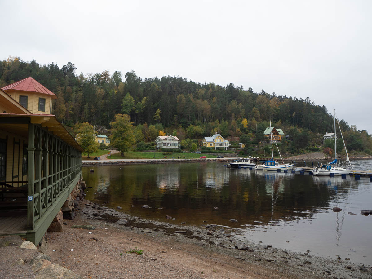 I kept following the coast all day. Sometimes the view opened up forward, towards the west and the Uddevalla bridge again. Other times the coast curved back and I had views back toward the harbour again. I passed through the old seaside resort at Gustafsberg, which was rather picturesque, but also newly built suburbia, which was rather less so.