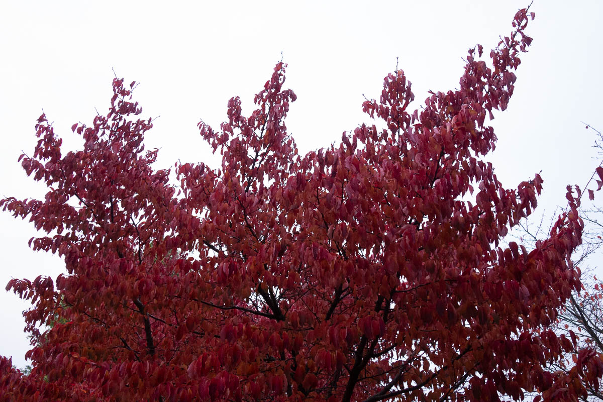 A chilly, foggy morning, until the sun finally rose above the treetops and banished both the cold and the fog.