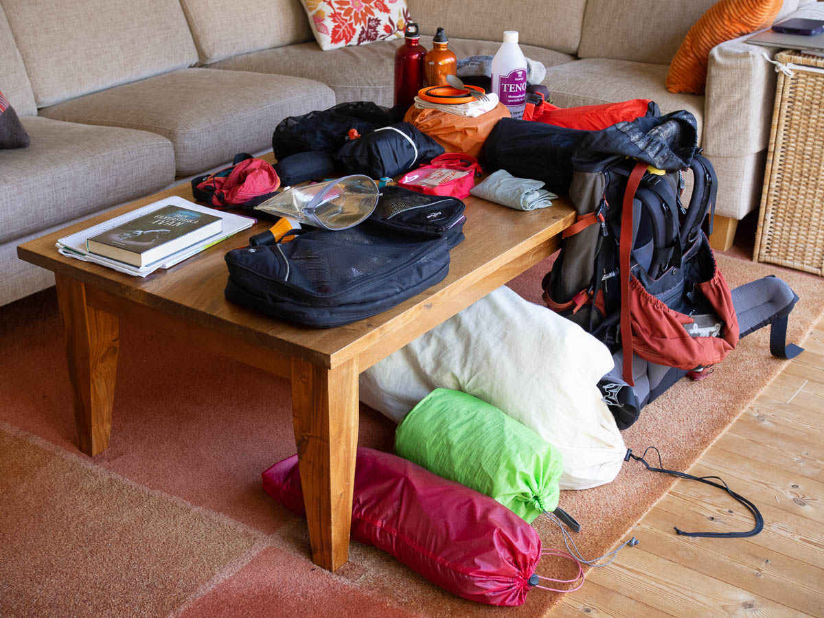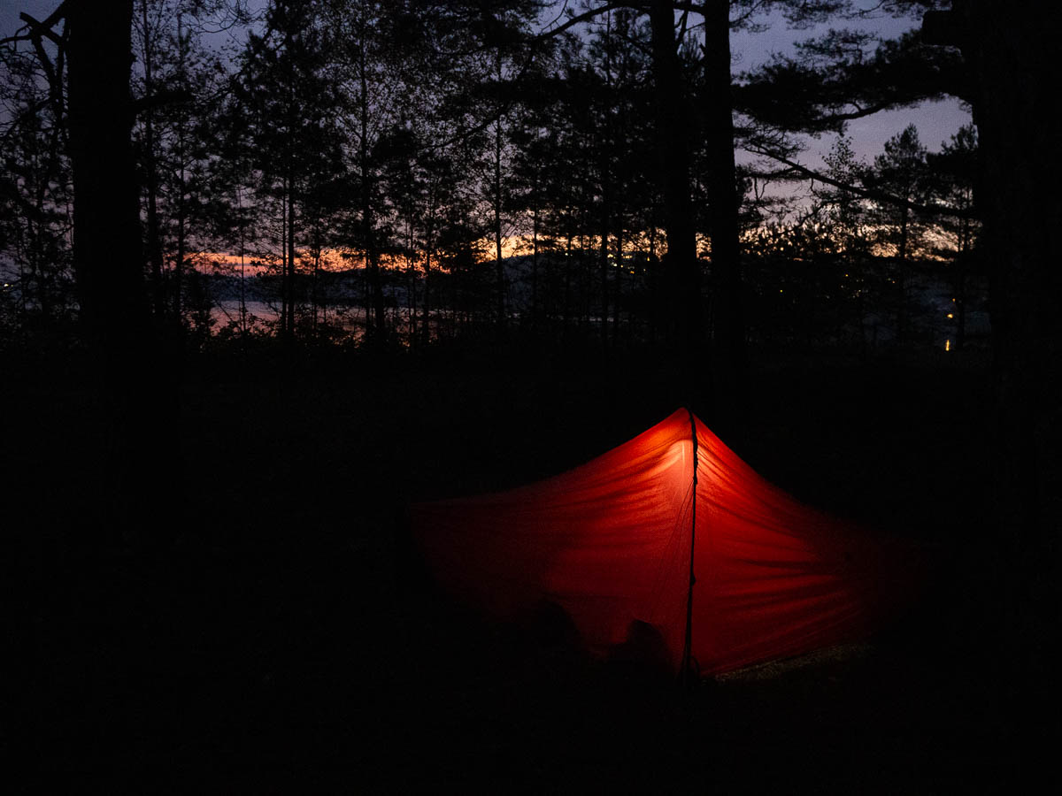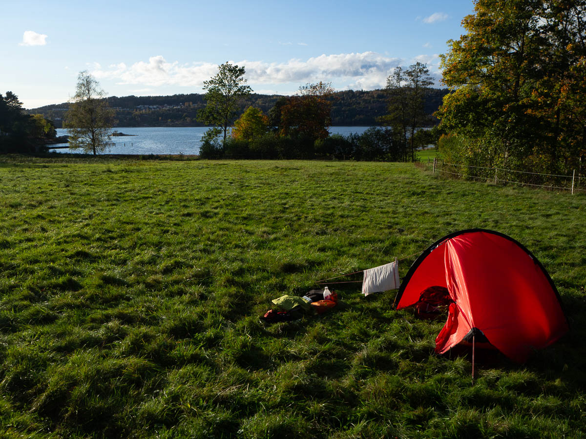 In the evening I struggled again to find a good camping spot. The forests were all quite dense and seriously muddy and scruffy. I finally got to some empty pastures and found one that looked like it might have some dryish, flattish parts at the far end. Got to the far end of the pasture, put my pack down and sat down for a minute – and when I stood up again, there were suddenly horses in the pasture. Their arrival did mess up my plans but at least the timing was impeccable: it would have been so much more awkward if they had arrived when I was in the middle of cooking my dinner, for example. Horses are lovely animals but I don’t want to have to worry about them getting too interested in my stove, or my food, or my tent.