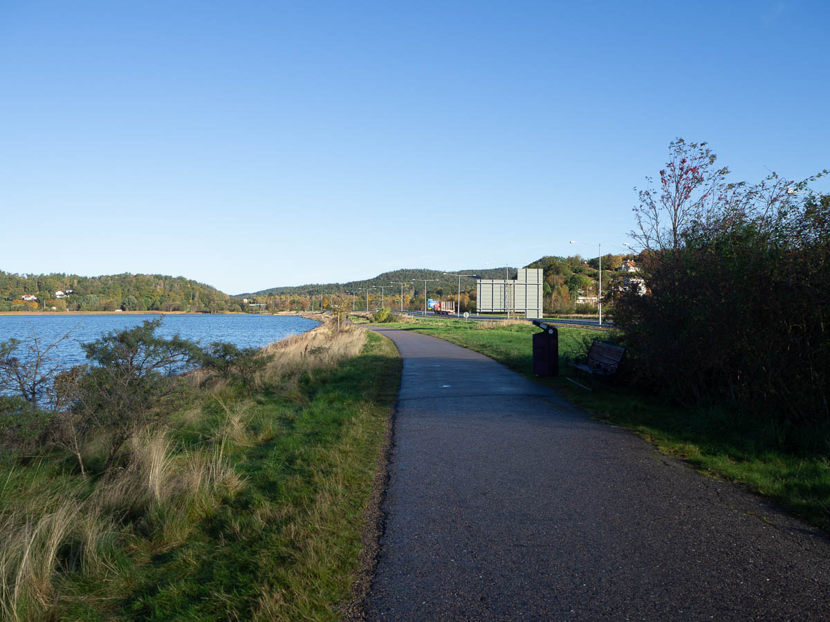 By mid-morning I reached the outskirts of Ljungskile. I was half expecting the trail to go through some ugly industrial zone. It wasn’t quite that bad, but I did get a good kilometre or so of a cycle path running parallel to the E6 motorway.