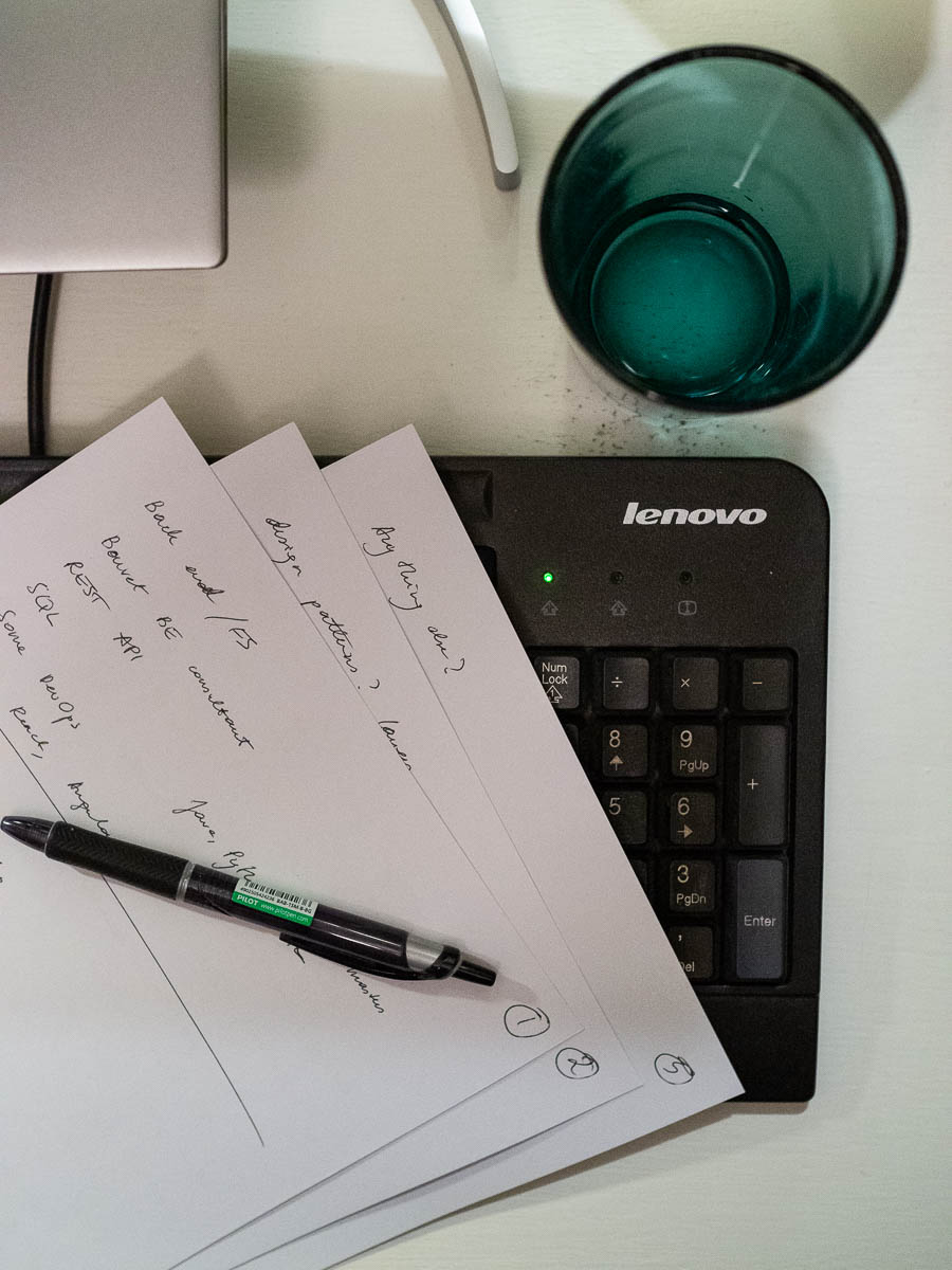 My pre-interview prep includes setting myself up with 4 sheets of A4 paper, a pen, one large glass of water, and proper lighting. Two hours of talking – even though I’m not the one doing most of the talking, by far – is thirsty work.