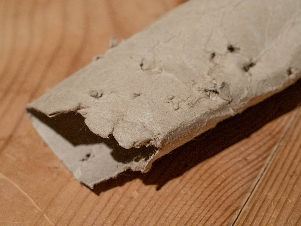 One kind of toy that keeps entertaining him more than most is empty toilet paper rolls. (Also, Adrian’s rubber eraser, and a pen topped with a large eraser.) They bounce, and move in a slightly unpredictable manner. Plus the toilet paper rolls can be attacked and killed. But afterwards, when they’re flattened and torn up and full of holes, they are no longer interesting.