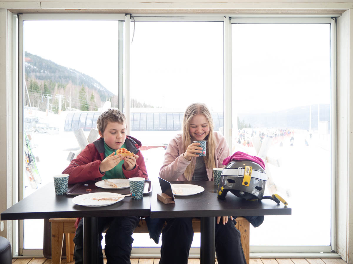 Eating waffles at the bottom of Mattesdalen in Branäs.
