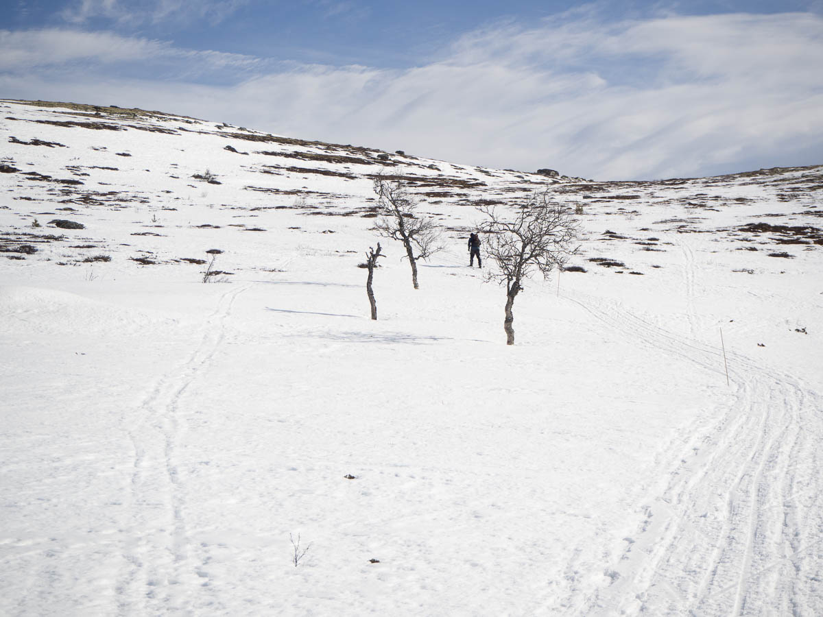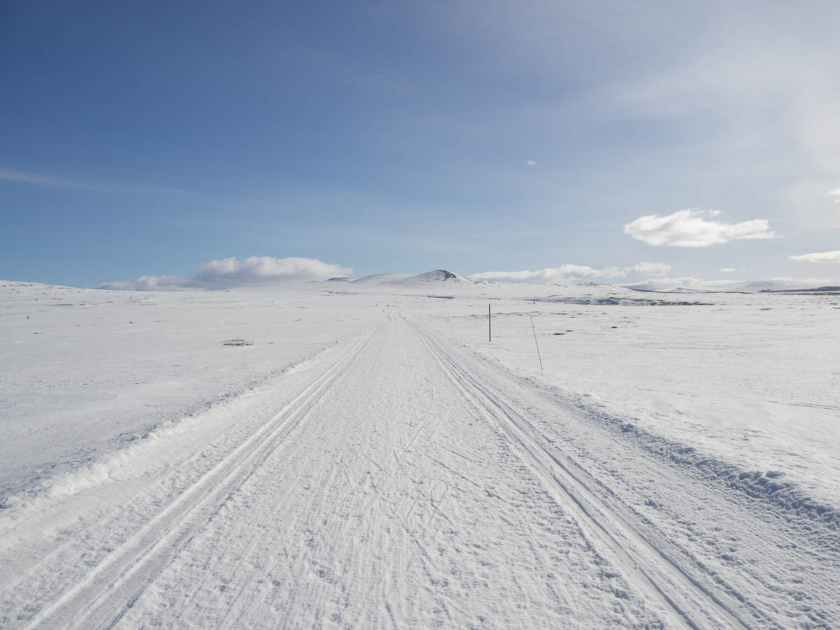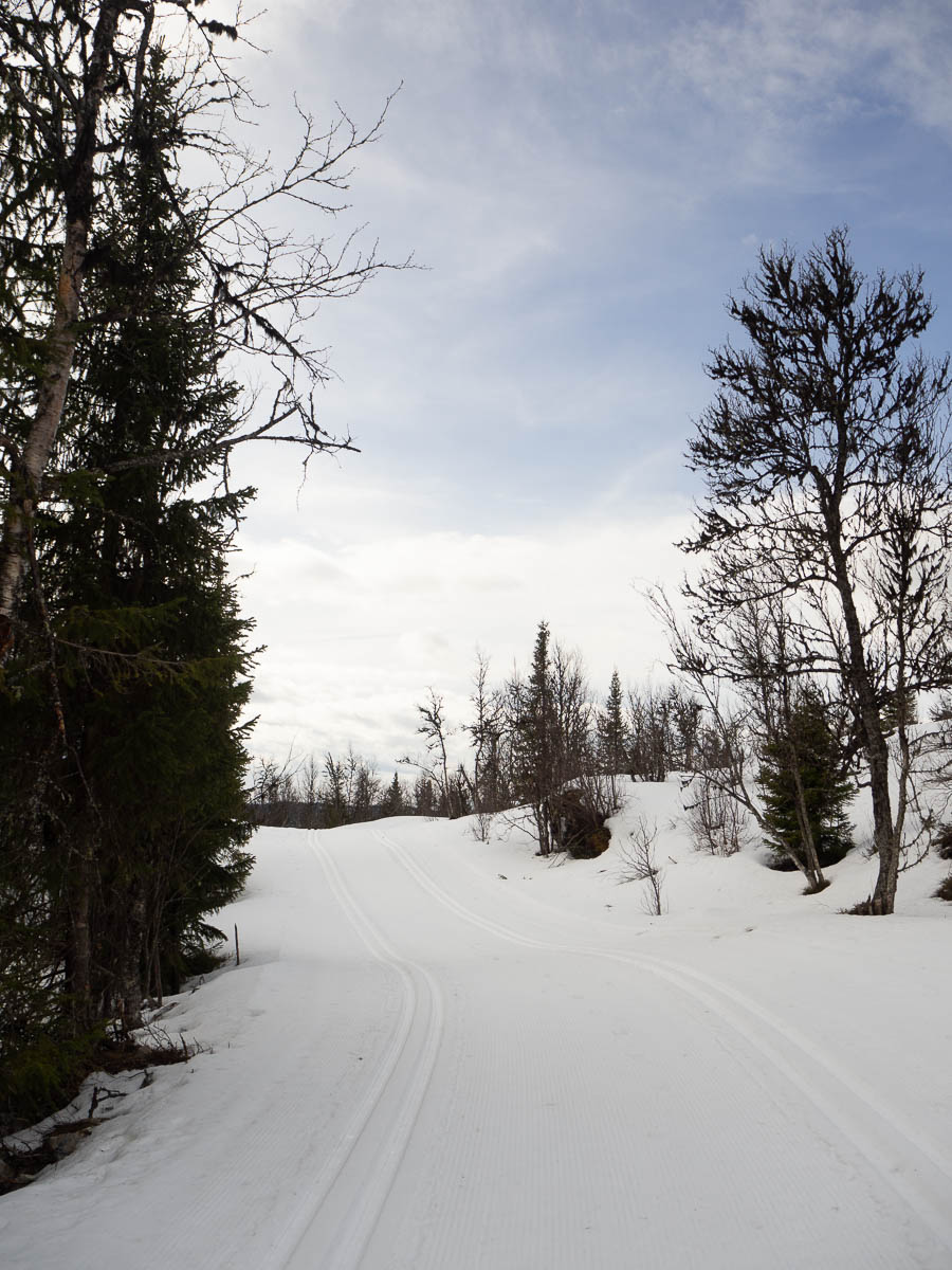 The last day. 23 km. We heard rumours of there being no snow beyond Nordseter so we might have to take the bus from there. That would have been a sad end to our trip. But the wonderful Skisporet.no app showed a live view of track groomers passing along those trails as we were having breakfast, so our worries were relieved.