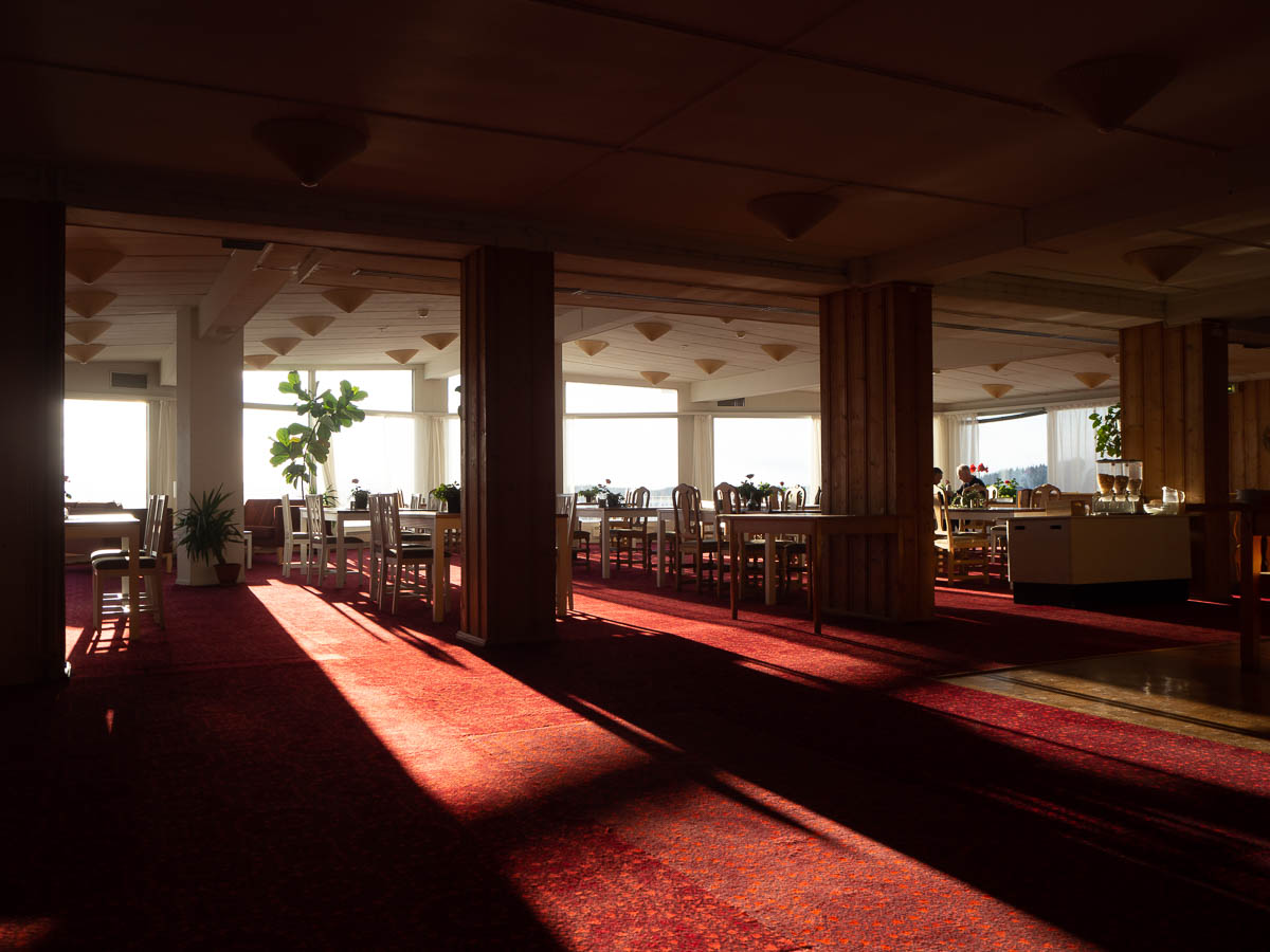 The hotel at Hornsjø was a strange one. Large, nearly empty, mostly unrenovated since the late 1970s by the looks of it, only reachable by a gravel/dirt road – like straight out of the Shining. Bathroom walls covered with nubbly greenish beige wallpaper, broken window latches, frayed carpet edges. We were the only group staying here tonight, and while there were three or four other guests here as well, I think the staff outnumbered us. But the beds were decent and the food was good, and there were no actual murderers in sight.