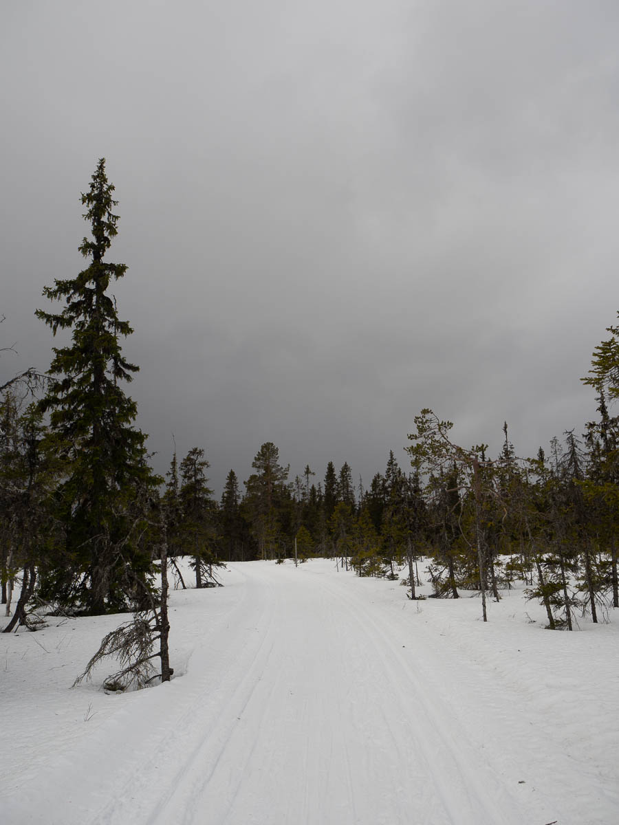 The last section of trail today went through the woods near Lillehammer. Narrowish paths with natural rather than machine-made trails, and quite a lot of winding downhill slopes, made for fun skiing.